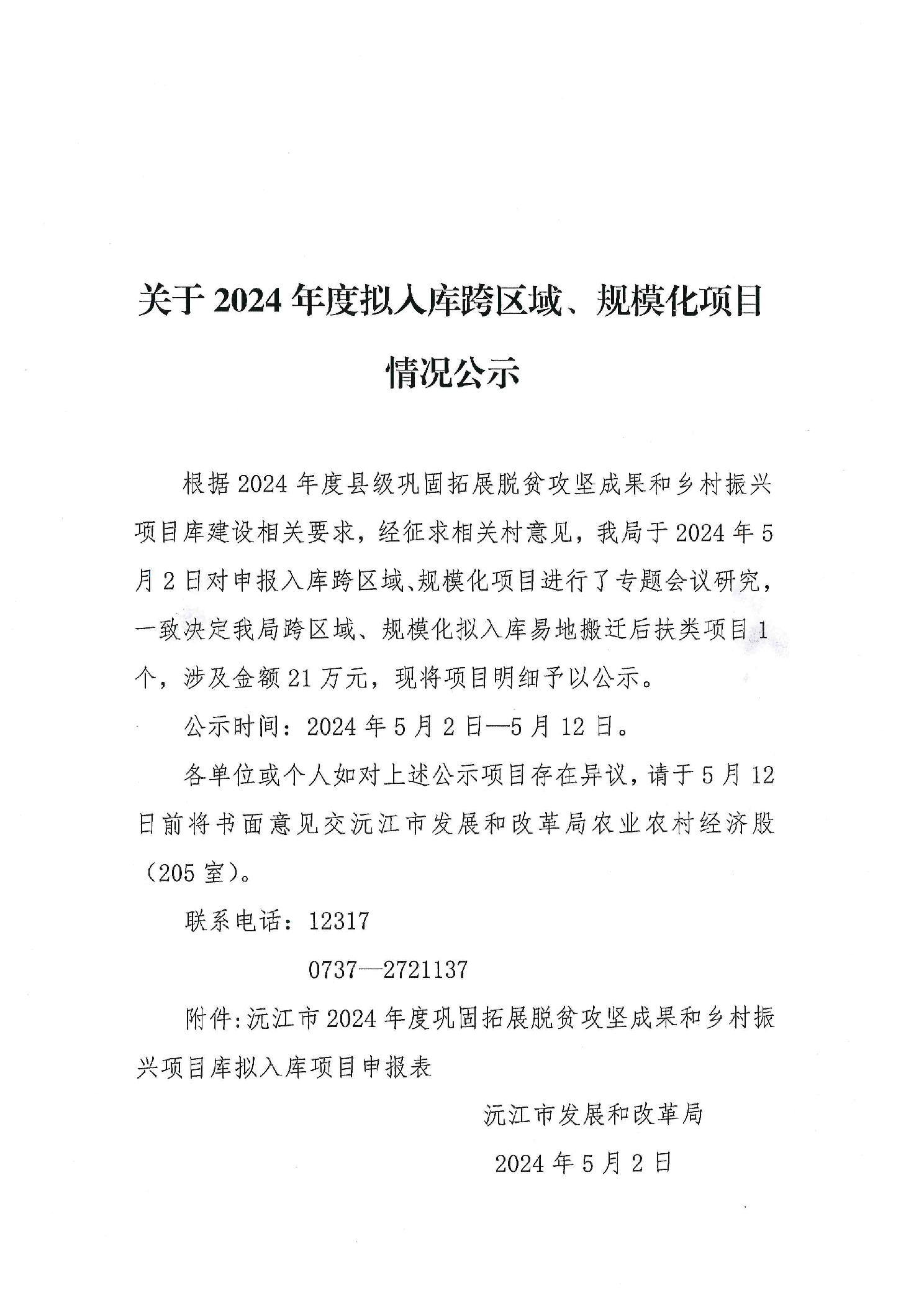 關(guān)于2024年度擬入庫跨區(qū)域、規(guī)模化項目情況公示