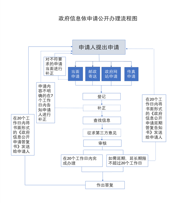 。3)答復。本機關受理機構收到申請之日起20個工作日內對下列情形予以答復(特殊情況經審批可以延長20個工作日):