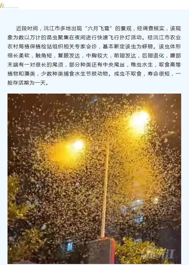 官方回應:蜉蝣聚集系正常自然現(xiàn)象