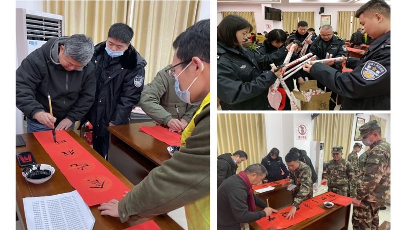 書法家們在現(xiàn)場揮毫潑墨,創(chuàng)作了五百余幅春聯(lián)。干警和家屬們在現(xiàn)場精心挑選心宜的對聯(lián),無不表達著迎接新春的喜悅和對美好生活的向往。駐獄武警官兵也聞訊趕來,應官兵要求,書法家們寫下了飽含寓意及祝福的新春對聯(lián),激勵官兵積極進取,振奮人心。