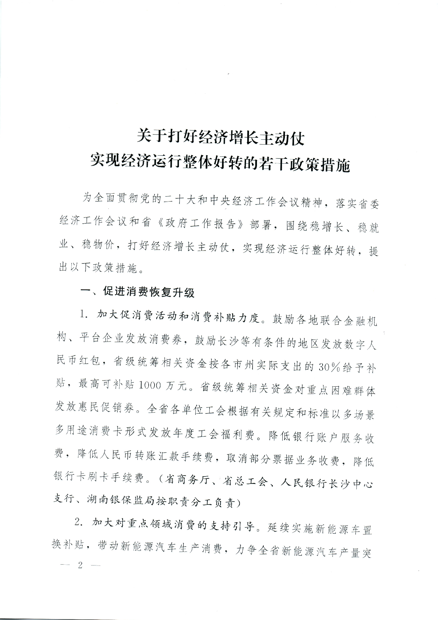 湖南省人民政府辦公廳印發(fā)《關(guān)于打好經(jīng)濟(jì)增長(zhǎng)主動(dòng)仗實(shí)現(xiàn)經(jīng)濟(jì)運(yùn)行整體好轉(zhuǎn)的若干政策措施》的通知