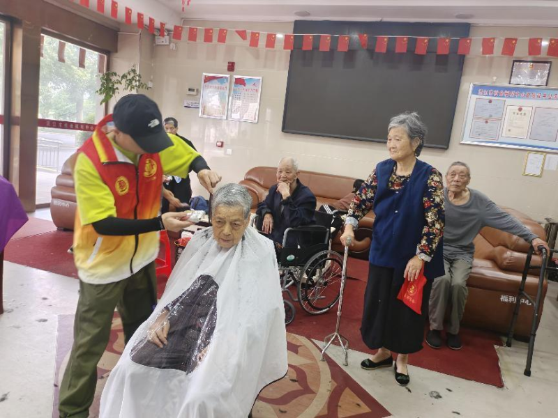啟動儀式上,志愿者們準備了精彩紛呈的節目表演,唱京劇、民族舞蹈、即興唱歌把老人們逗得合不攏嘴。義剪志愿者準備好理發工具,根據老年人要求進行“針對性”設計,還有幾位志愿者給手腳不靈動的老人修剪起了指甲,廚房里更是熱鬧非凡,志愿者們分工有序,剁餡、拌餡料、包餃子...