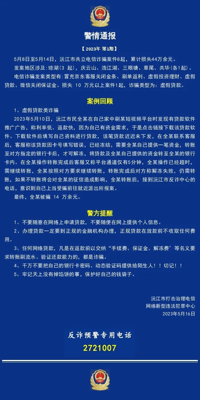 反詐周報:一周案發(fā)8起,損失44萬余元!| 2023年第1期