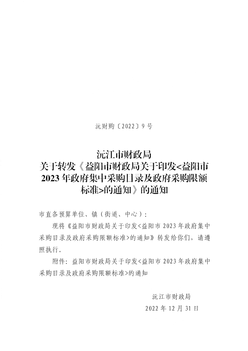 沅江市財(cái)政局關(guān)于轉(zhuǎn)發(fā)《益陽市財(cái)政局關(guān)于印發(fā)益陽市2023年政府集中采購目錄及政府采購限額標(biāo)準(zhǔn)的通知》的通知