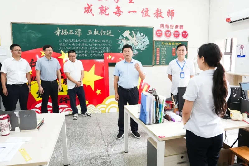 在玉潭學校,楊智勇走進教室、教師辦公室,與師生親切交流,了解學校的教育教學特色、課程設(shè)置以及師生的工作學習情況。他對學校的辦學成果給予充分肯定,并希望學校繼續(xù)發(fā)揮自身優(yōu)勢,創(chuàng)新教育教學模式,提升教育教學質(zhì)量,打造優(yōu)質(zhì)教育品牌,為學生提供更加多元化、個性化的教育服務(wù)。