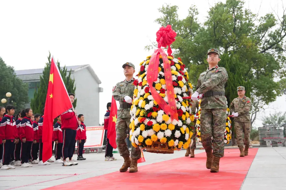 隨后,伴隨深情的《獻(xiàn)花曲》,8名禮兵穩(wěn)穩(wěn)地抬起4個(gè)花籃,緩緩走向紀(jì)念碑,將花籃整齊擺放在紀(jì)念碑前。楊智勇緩步上前,仔細(xì)整理花籃緞帶。參加儀式的全體人員面向紀(jì)念碑向革命先烈三鞠躬,表達(dá)崇高敬意,并列隊(duì)沿紀(jì)念碑依次敬獻(xiàn)鮮花,寄托對(duì)烈士的無(wú)限哀思。