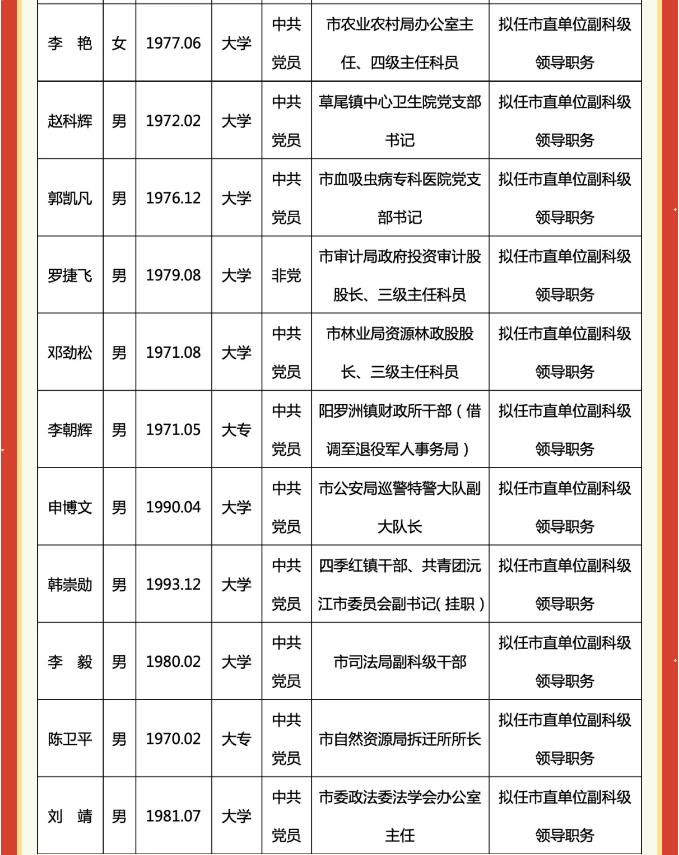 2021年沅江市委管理干部任前公示公告(9月6日)