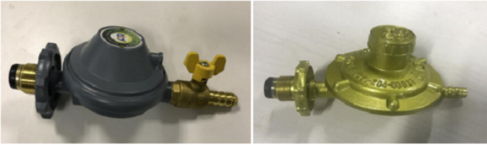 液化石油氣調壓器俗稱減壓閥或調壓閥,GB 35844-2018 《瓶裝液化石油氣調壓器》對產品結構有明確要求,即調壓器不得帶有可調節功能。(如下圖:左圖為帶調節功能的調壓器,右圖為不帶調節功能的調壓器)