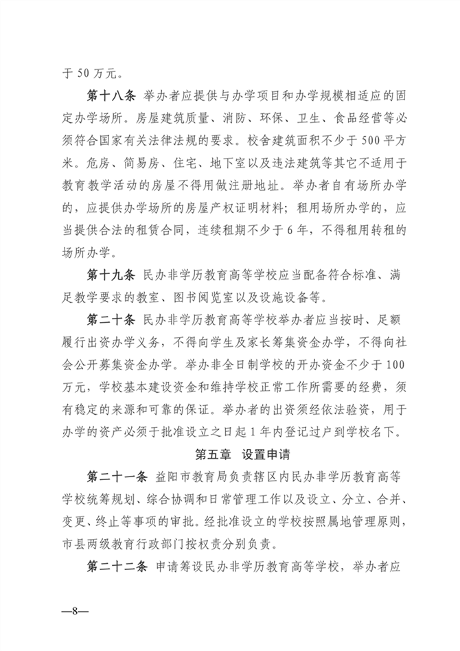 益陽市教育局關于印發(fā)《益陽市民辦非學歷教育高等學校設置標準》的通知(益教發(fā)〔2021〕1號)
