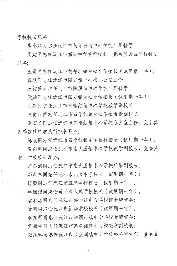 沅江市教育局關于胡國強等同志職務任免的通知