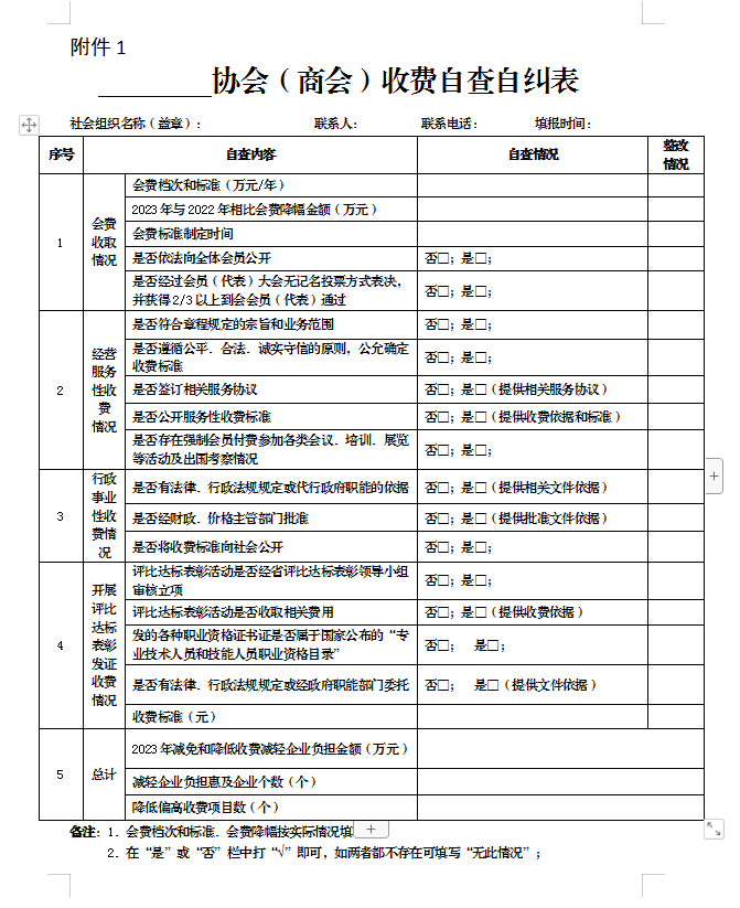 整治重點:(1)強制或變相強制入會并收取會費,強制會員單位參加各類會議、培訓、考試、展覽、評比評選、出國考察等各類收費活動;(2)只收取會費不提供服務,或者對會費所包含的基本服務項目重復收取費用,變相提高收費標準,只收費不服務或少服務的;(3)利用分支(代表)機構多頭收取會費;(4)采取“收費返成”等方式吸收會員、收取會費;(5)會費標準超過4檔,或同一會費檔次再細分不同標準,或采用浮動性會費標準;(6)會費標準未經2/3以上會員(代表)出席的會員(代表)大會并經出席會員(代表)1/2以上以無記名投票方式表決通過;(7)利用法定職責或者行政機關委托、授權事項違規收費;(8)通過評比達標表彰活動收費;(9)通過職業資格認定違規收費;(10)收取會費未開具社會團體會費票據,或者對會員、企業的捐贈費用開具會費票據的;(11)強制市場主體提供贊助、捐贈、訂購有關產品或刊物;(12)違規設置分支(代表)機構、未向登記管理機關備案分支(代表)機構,以設立分支機構、代表機構的名義收取或變相收取管理費、贊助費;(13)以擔任理事、常務理事、負責人為名向會員收取除會費以外的其他費用;(14)強制性經營服務性收費項目的收費標準未按照規定程序制定或修改;(15)實行市場調節價格的經營服務性收費項目收費標準不合理;(16)假借慈善、鄉村振興、扶貧、項目開發名義收取會員單位、企業費用用于從事非法集資、傳銷等活動;(17)接受政府部門或其他單位委托舉辦展覽、展銷等活動收取費用明顯偏高,出現費用大量節余;(18)不通過“信用中國”網站以及協會商會門戶網站、微信公眾號等管道,向社會公示收費項目、收費性質、服務內容、收費標準及依據等信息;(19)違反規定以保證金、押金、捐贈、贊助等形式變相收費;(20)其他企業和群眾反映強烈的亂收費行為。