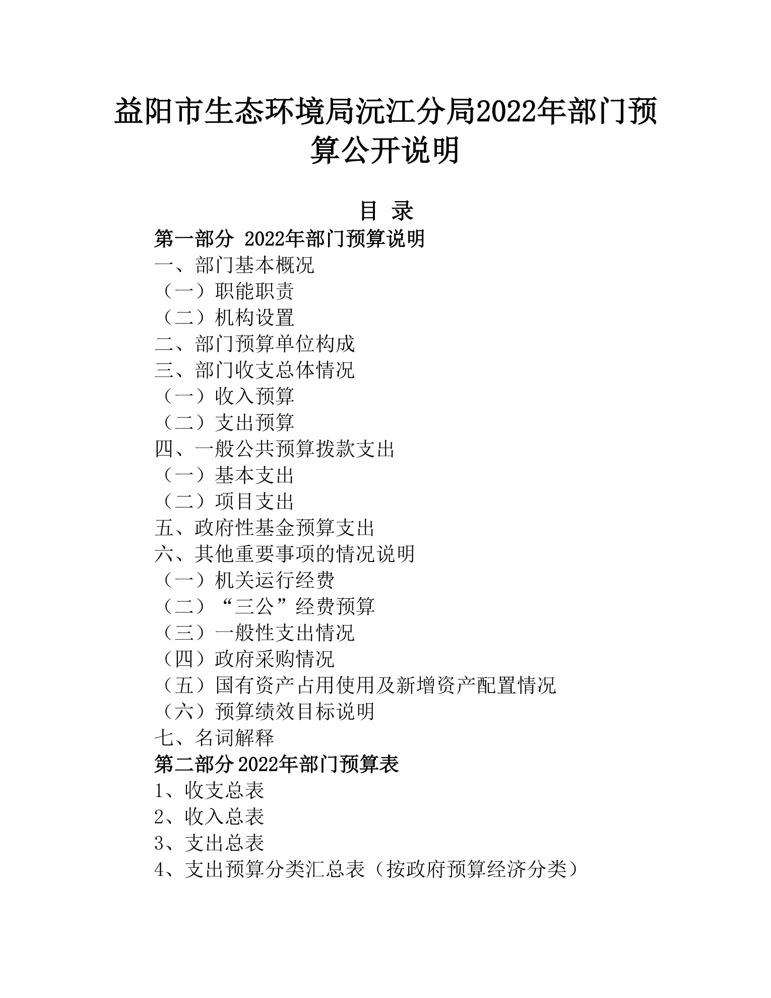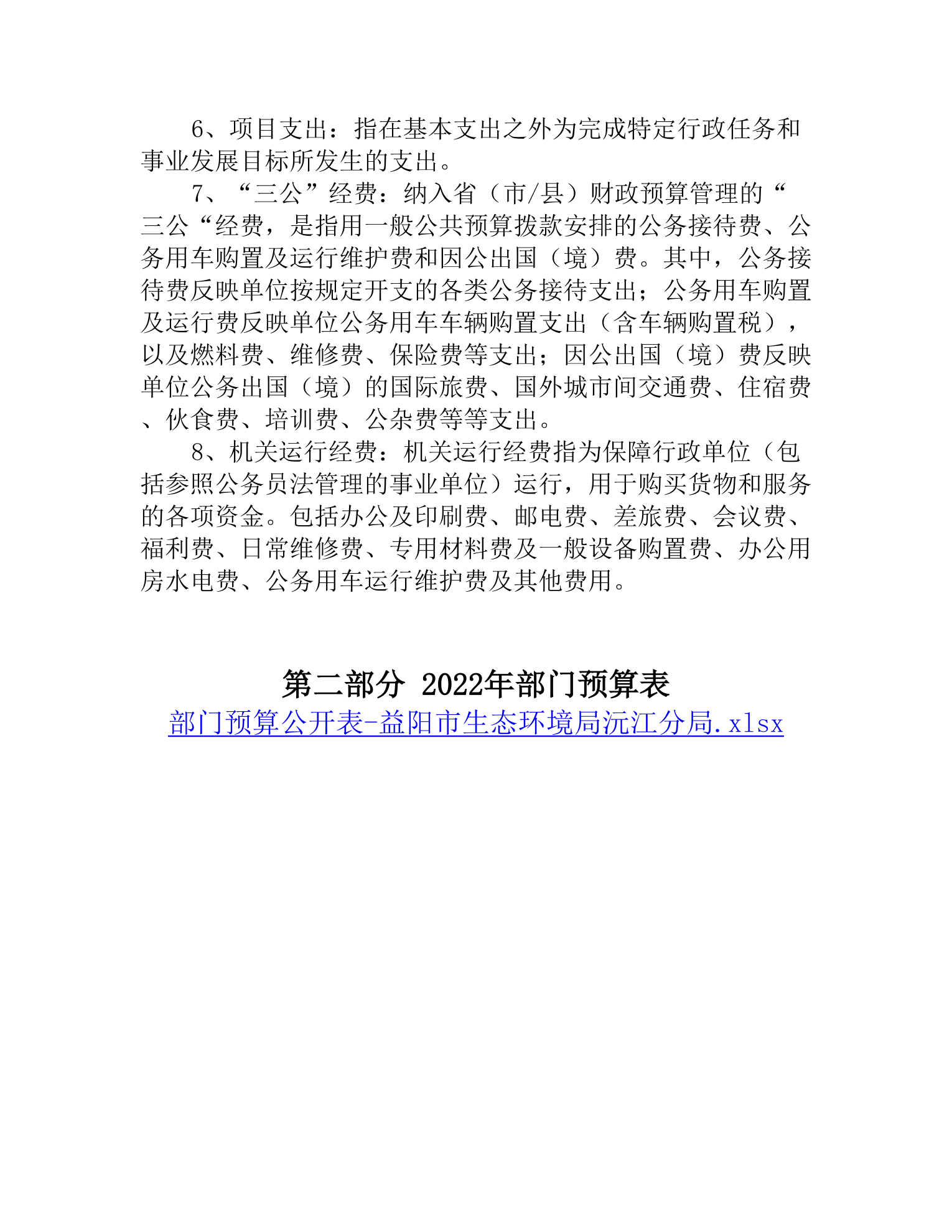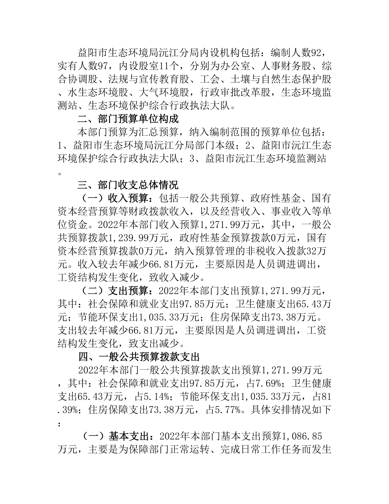 益陽市生態環境局沅江分局2022年部門預算公開說明