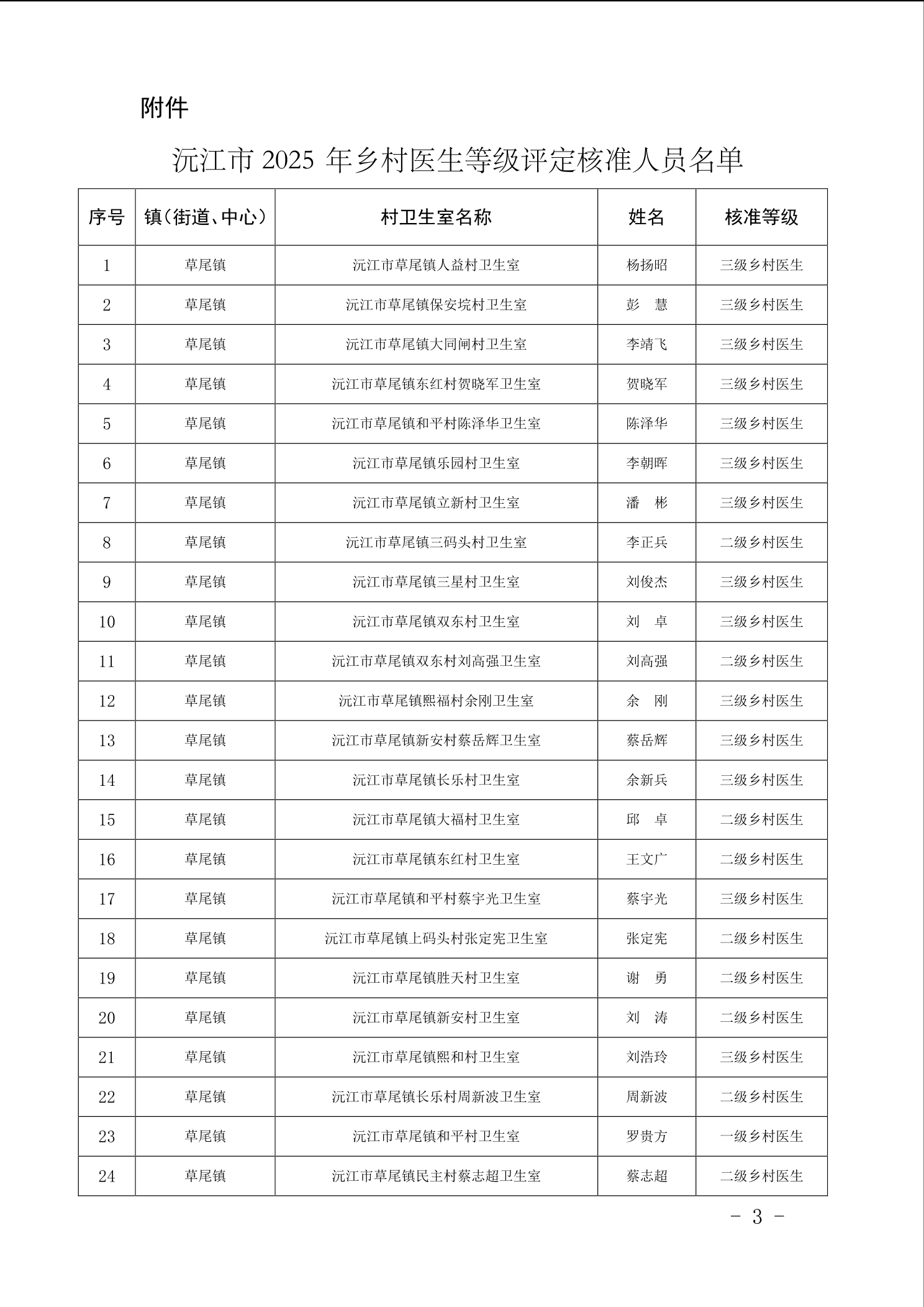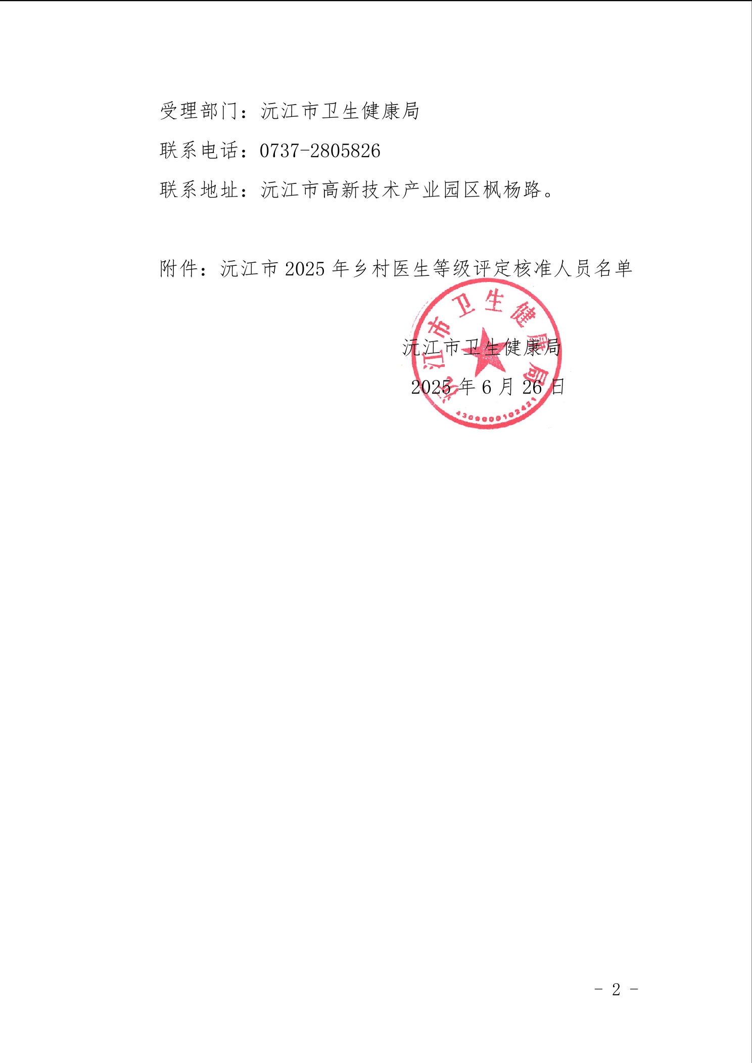 沅江市衛生健康局 關于 2025 年全市鄉村醫生等級評定核準 人員名單公示