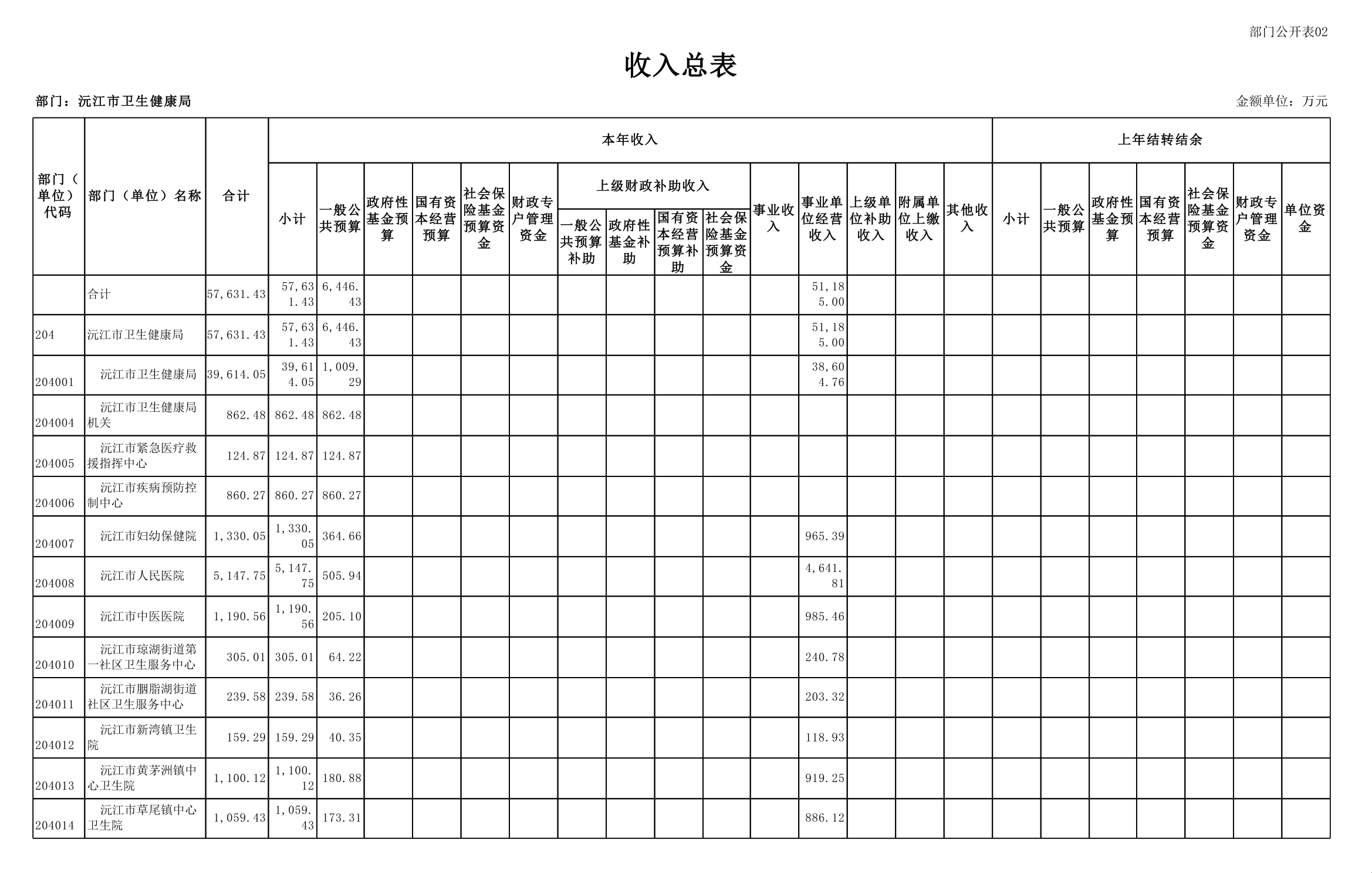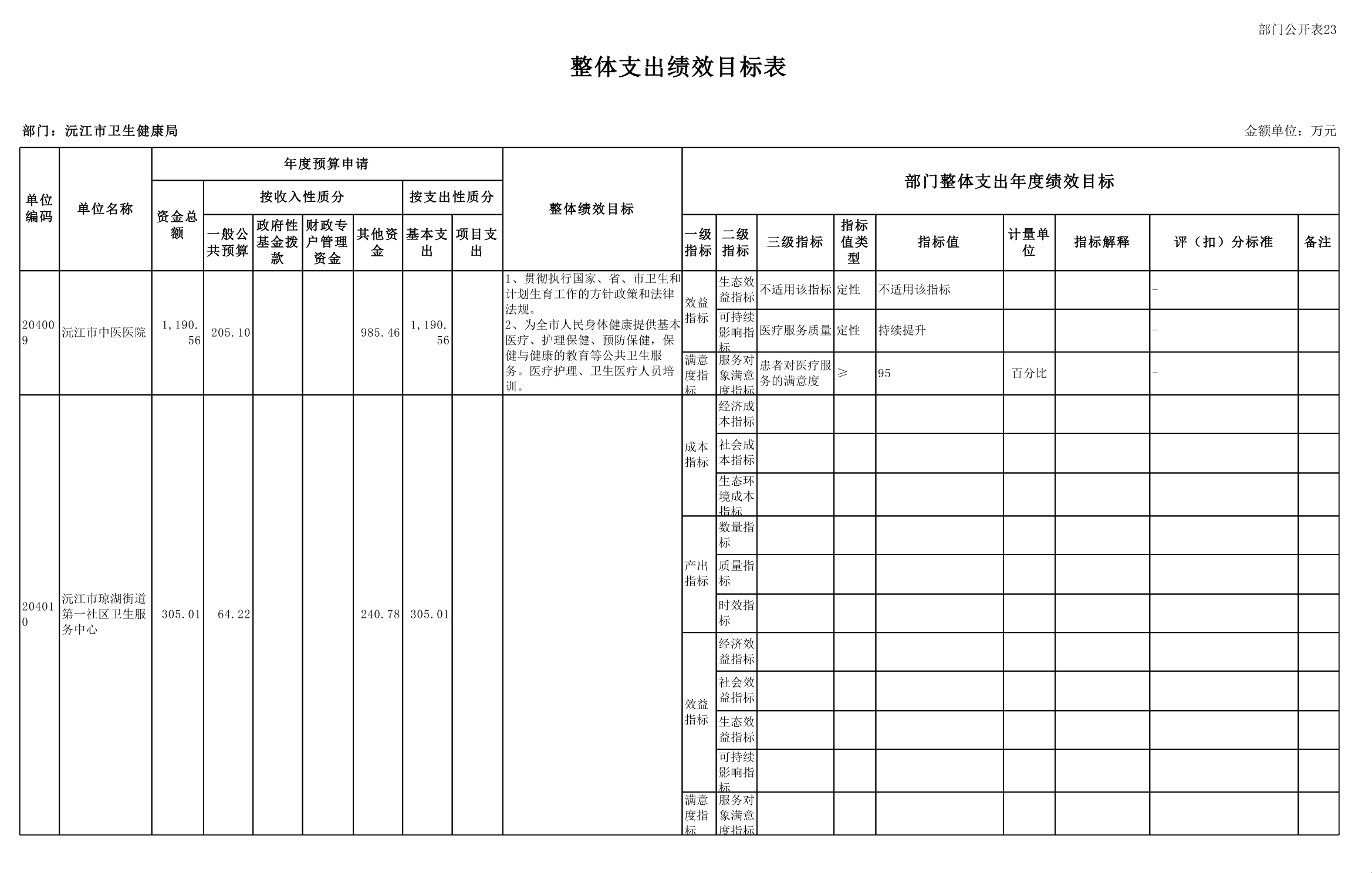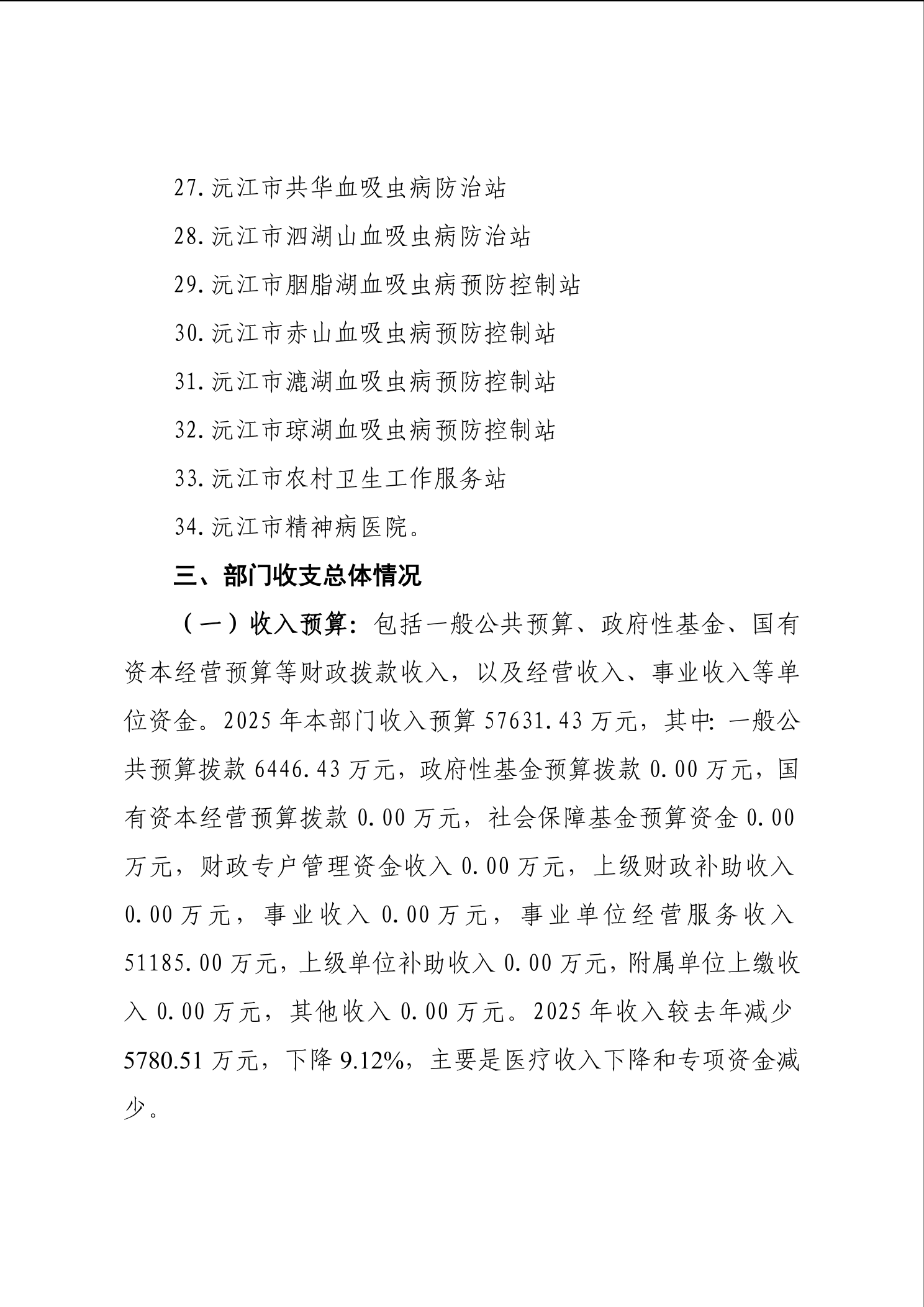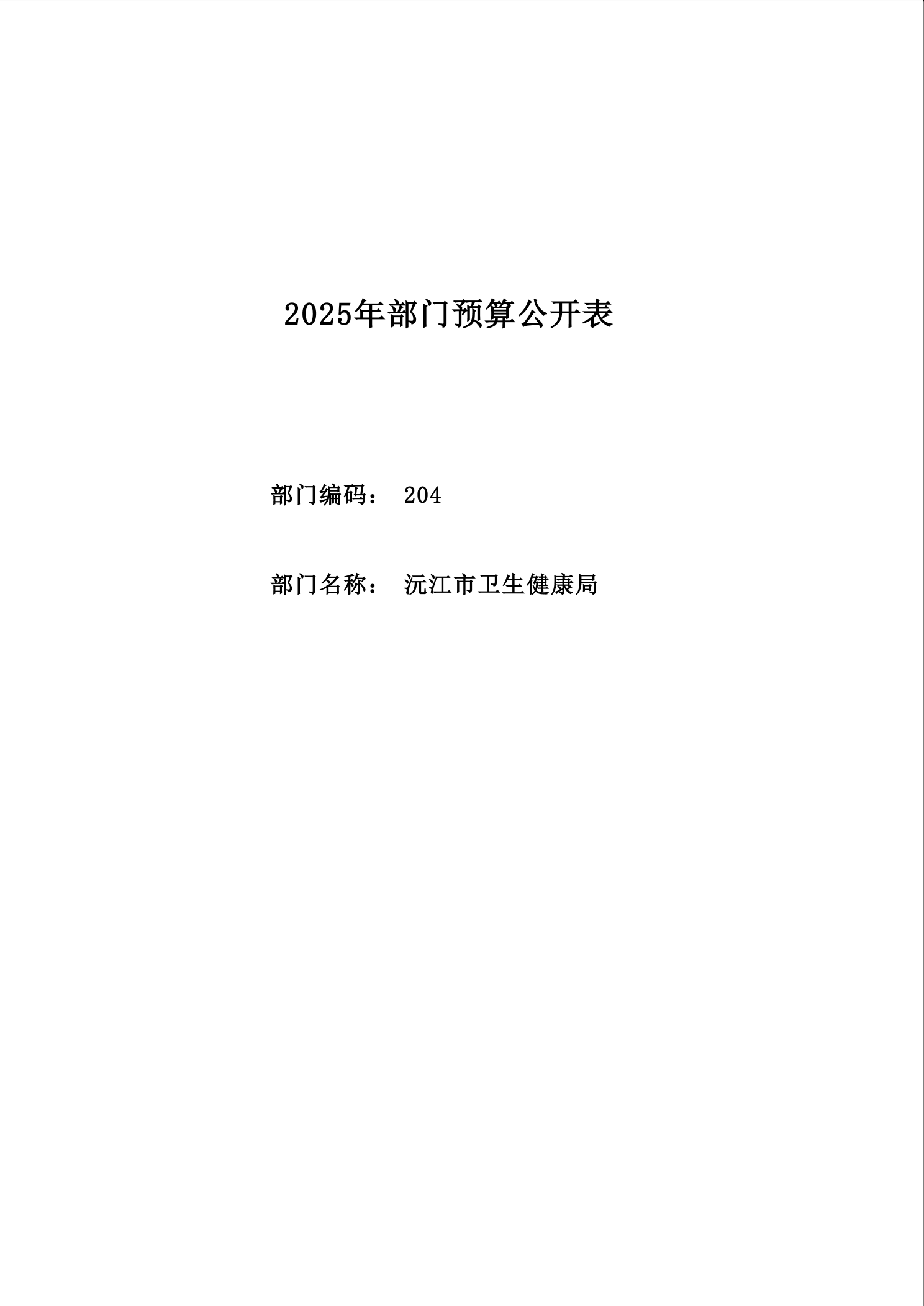2025年沅江市衛生健康局部門預算公開