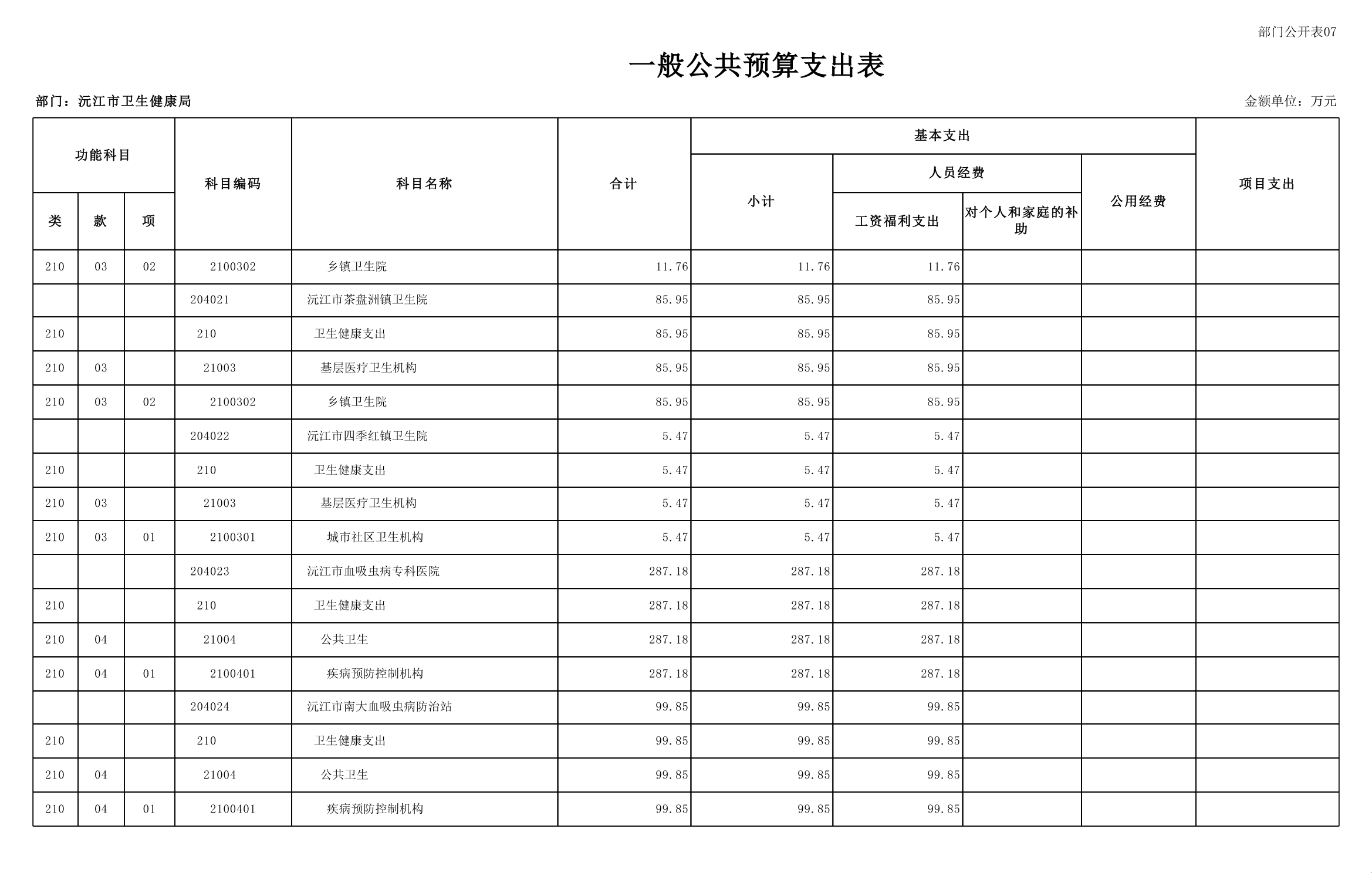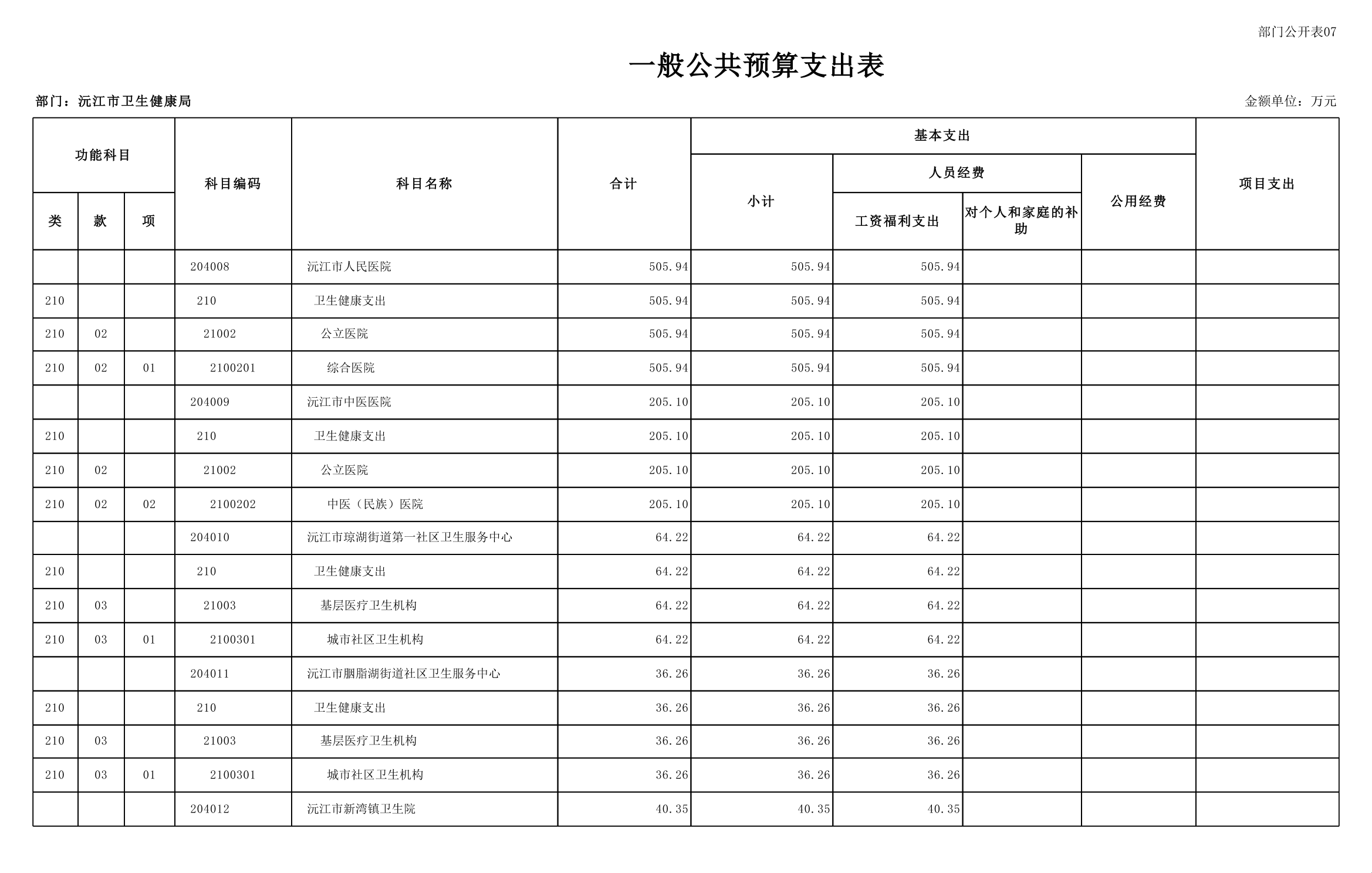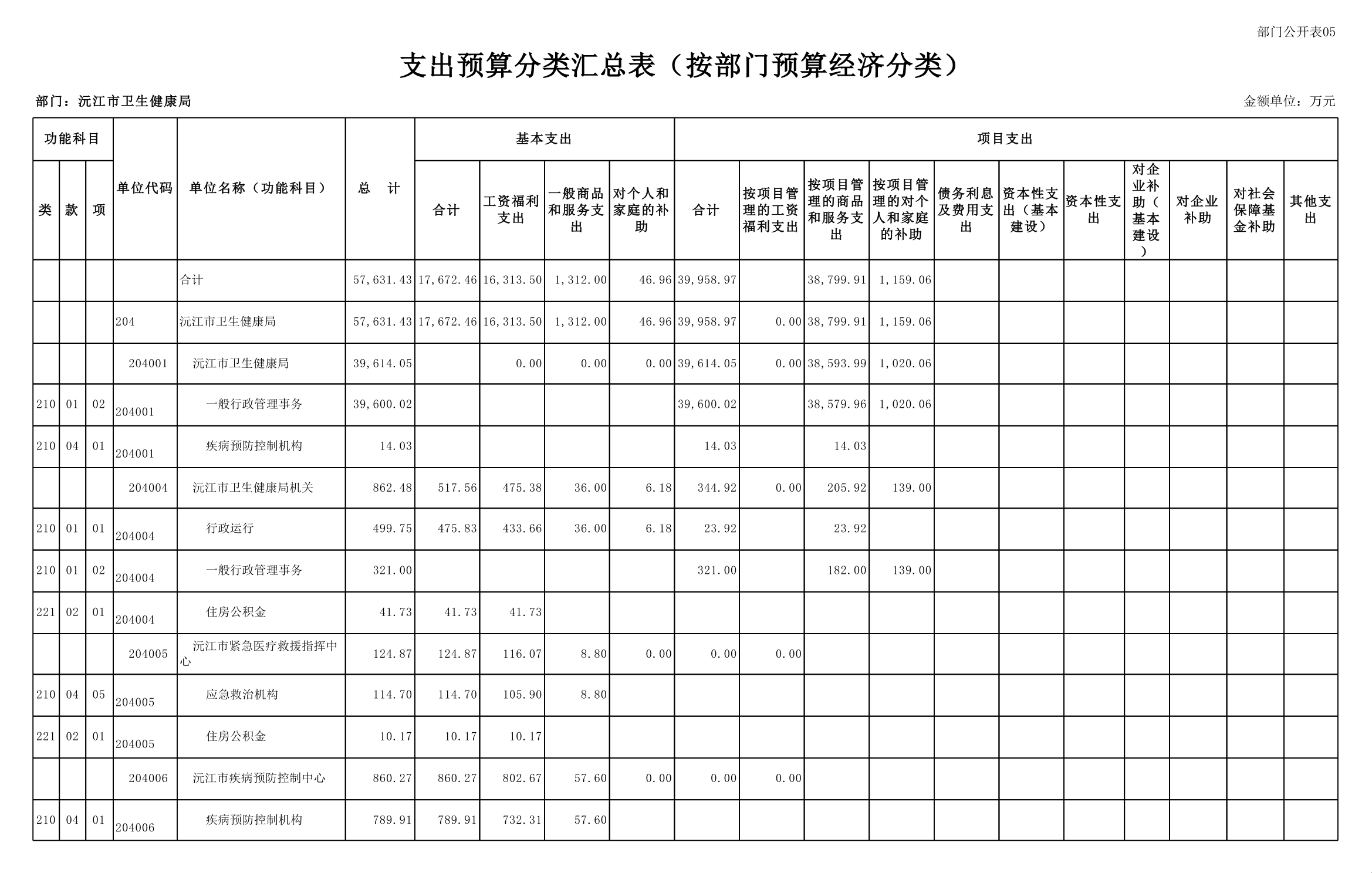 2025年沅江市衛生健康局部門預算公開