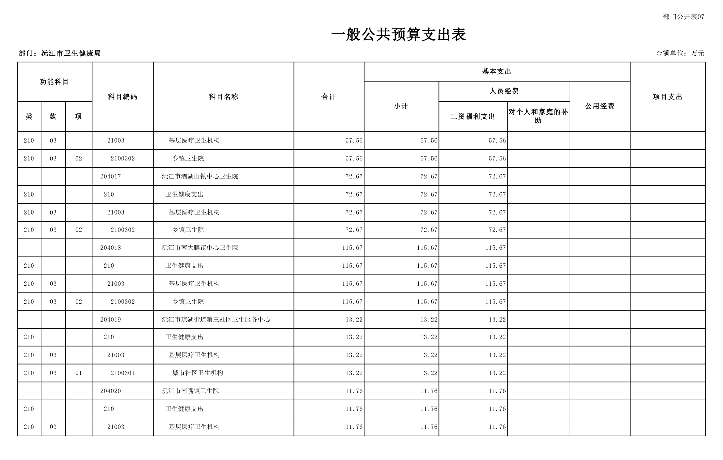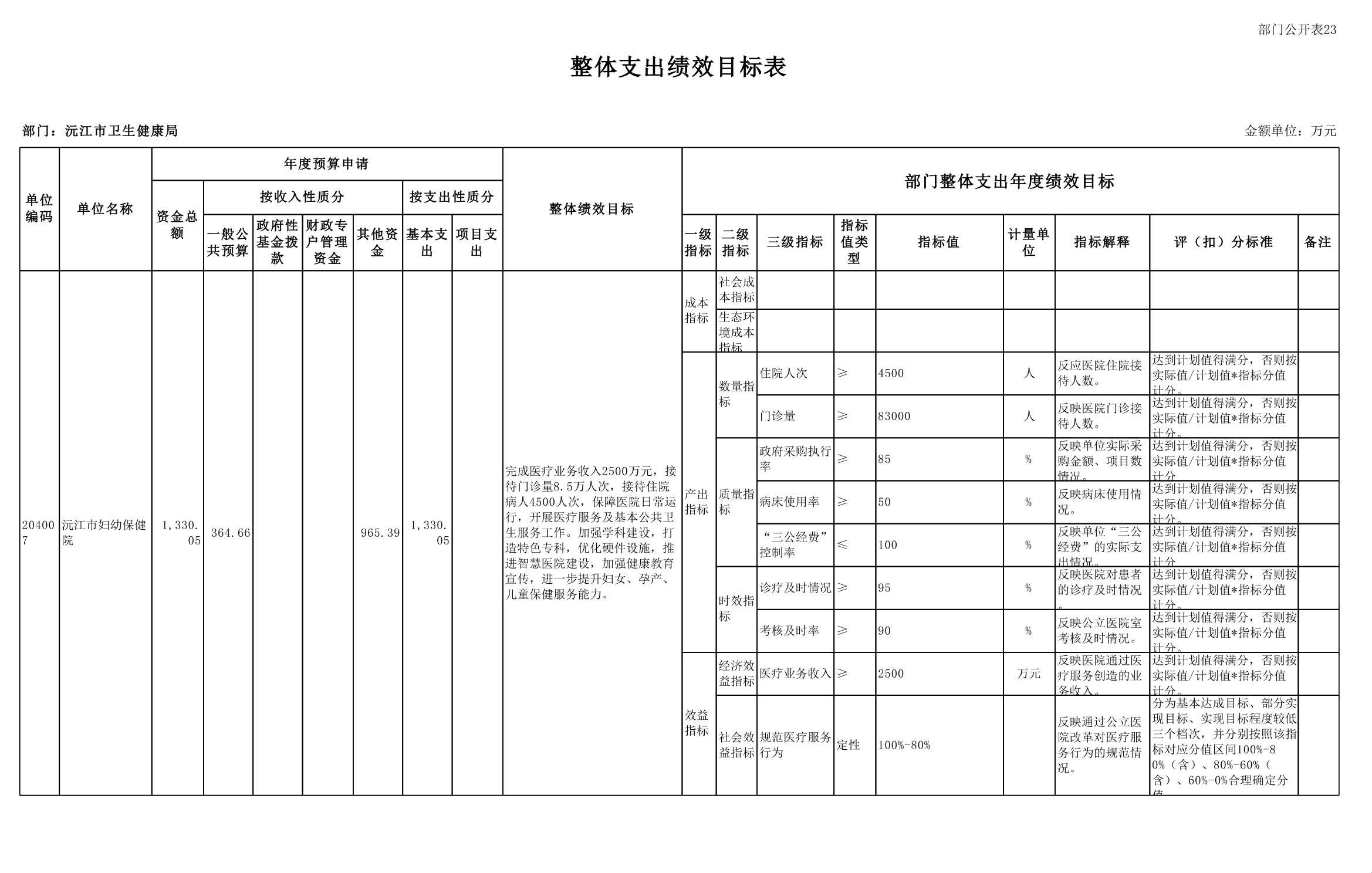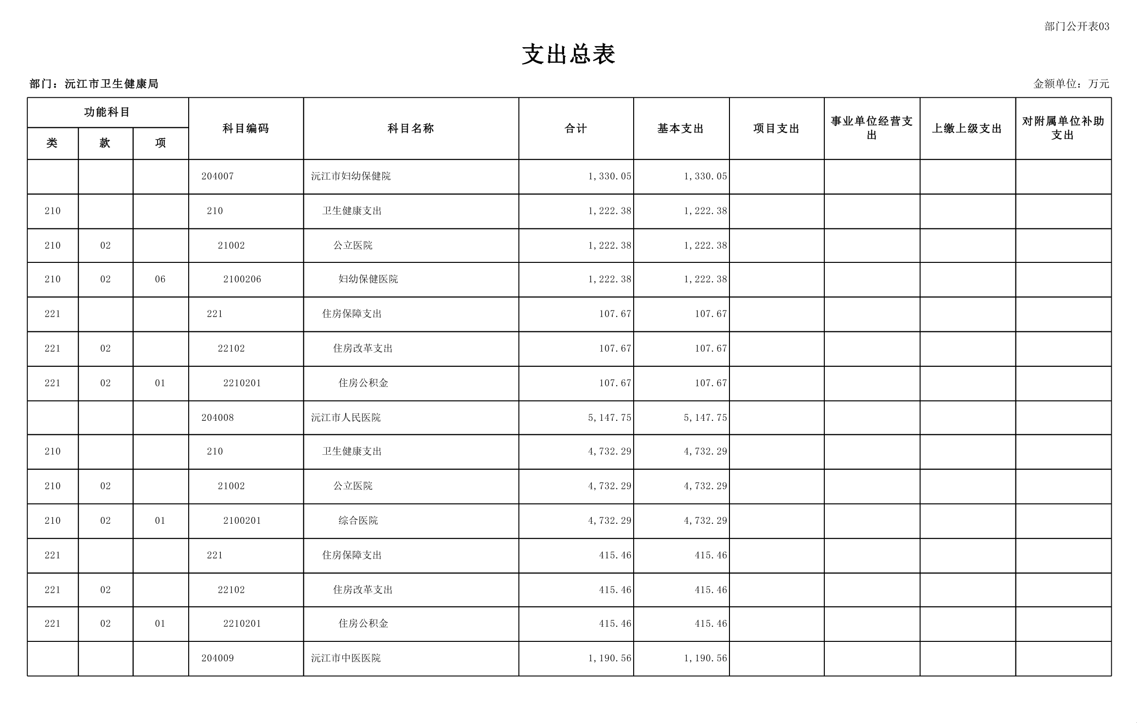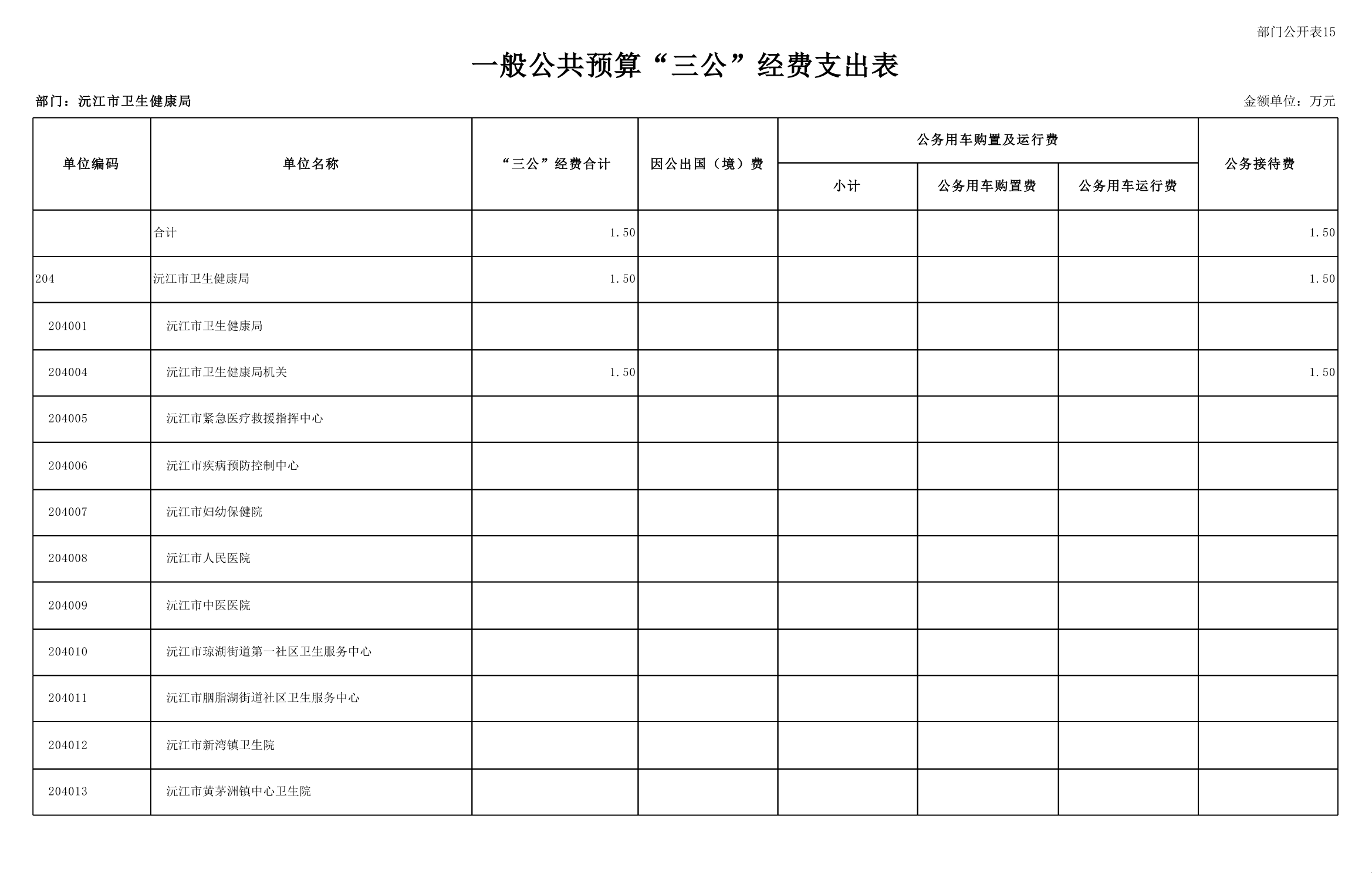 2025年沅江市衛生健康局部門預算公開