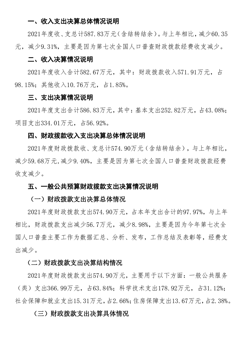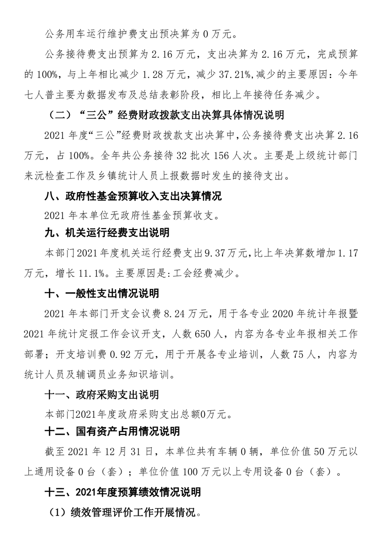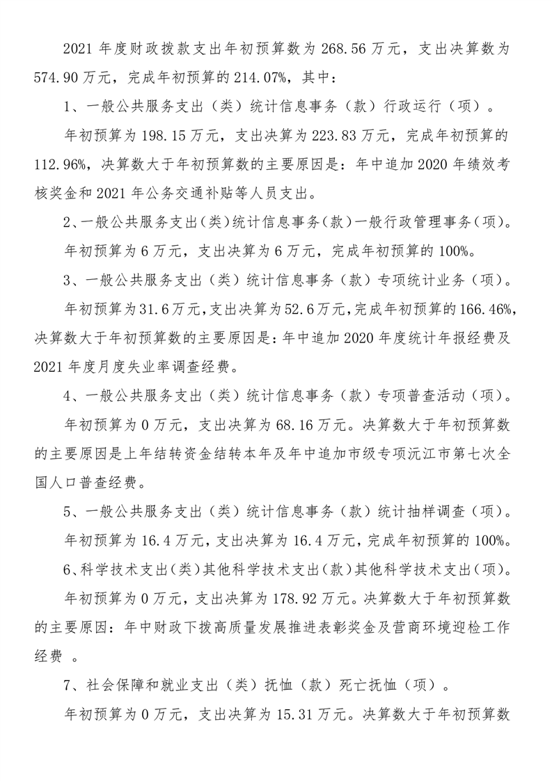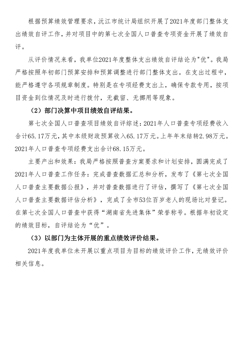 沅江市統(tǒng)計局2021年部門整體支出績效自評報告.docx