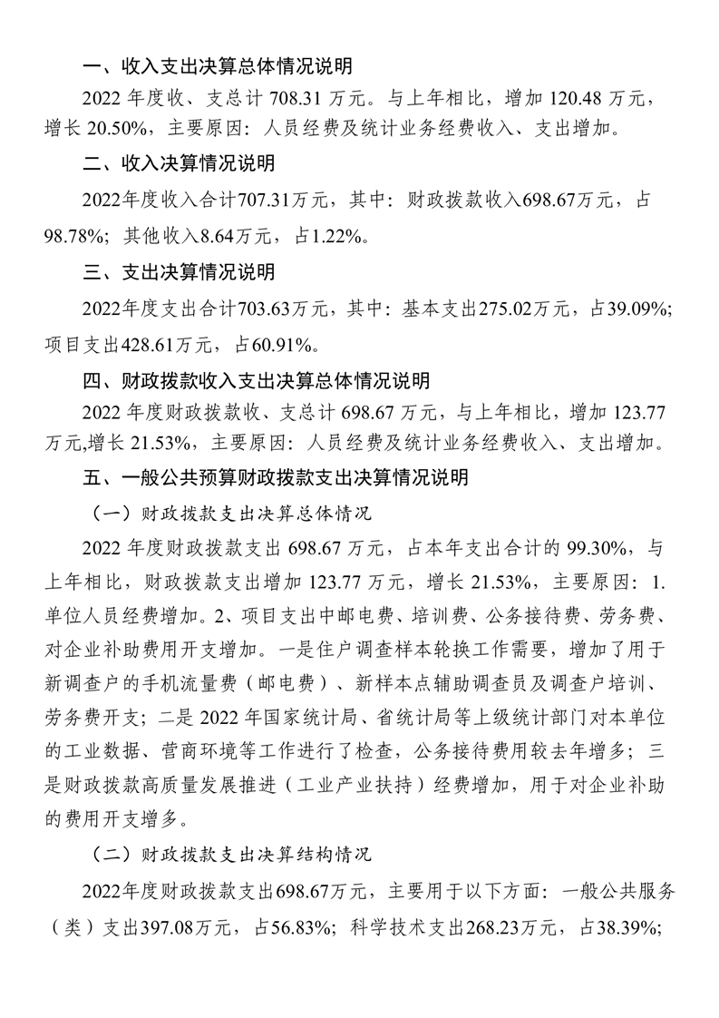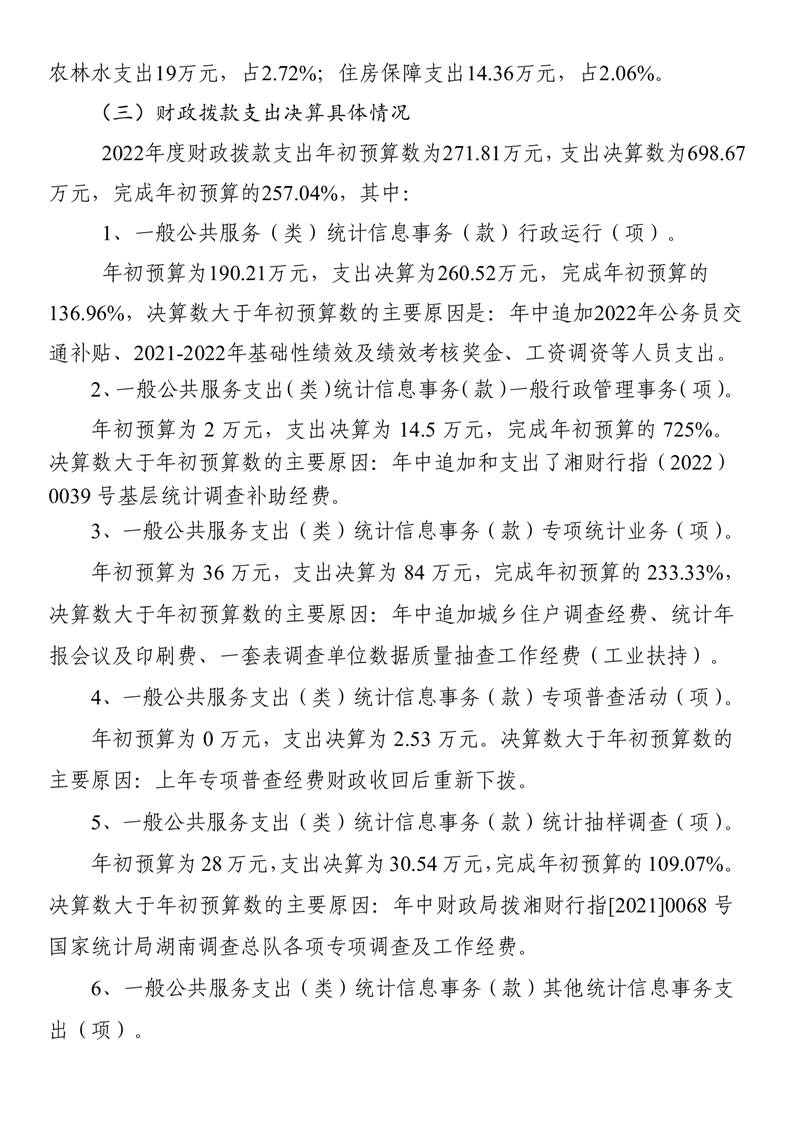 沅江市統計局2022年度部門決算公示