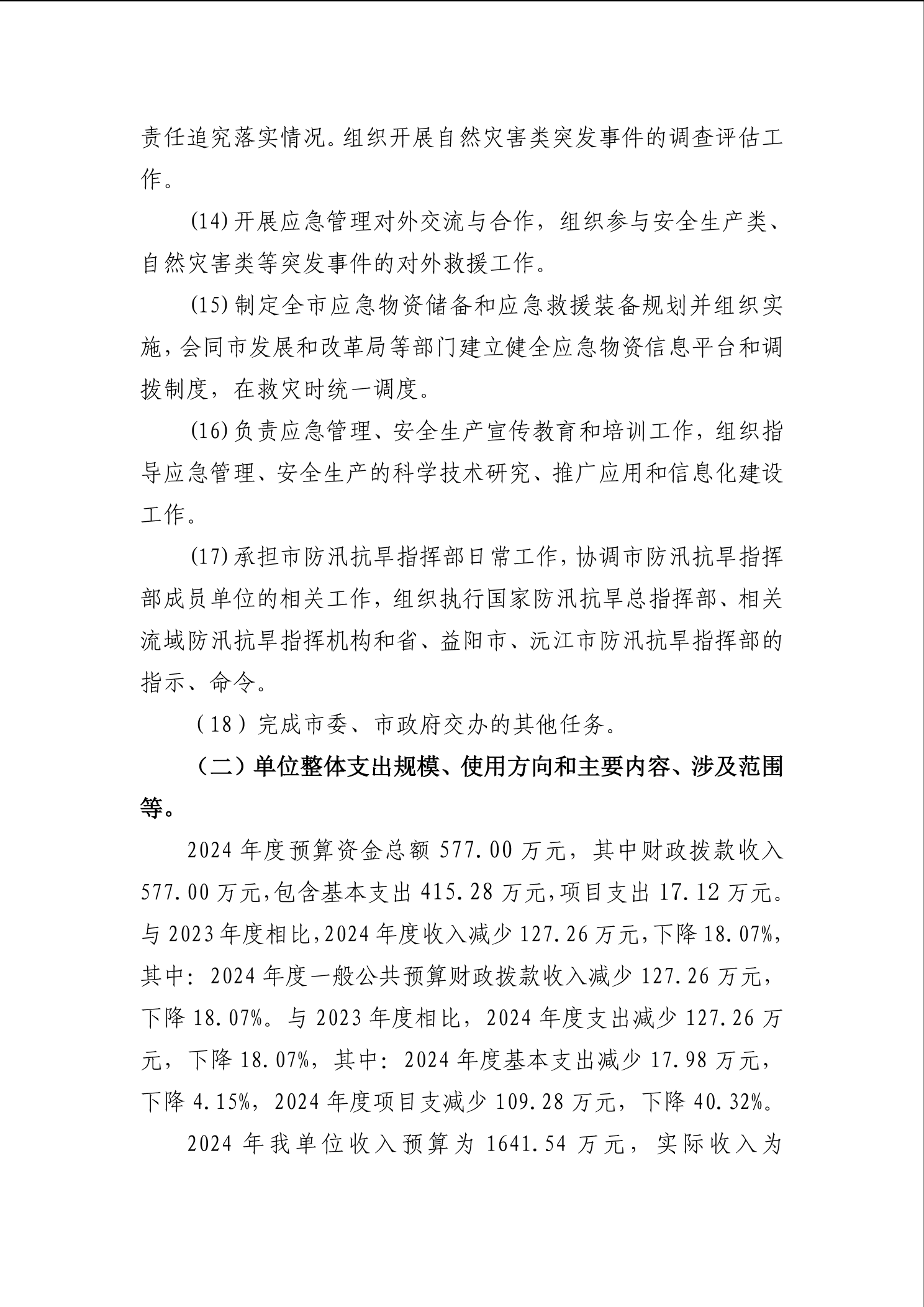 2024年度沅江市應急管理局整體支出績效評價報告