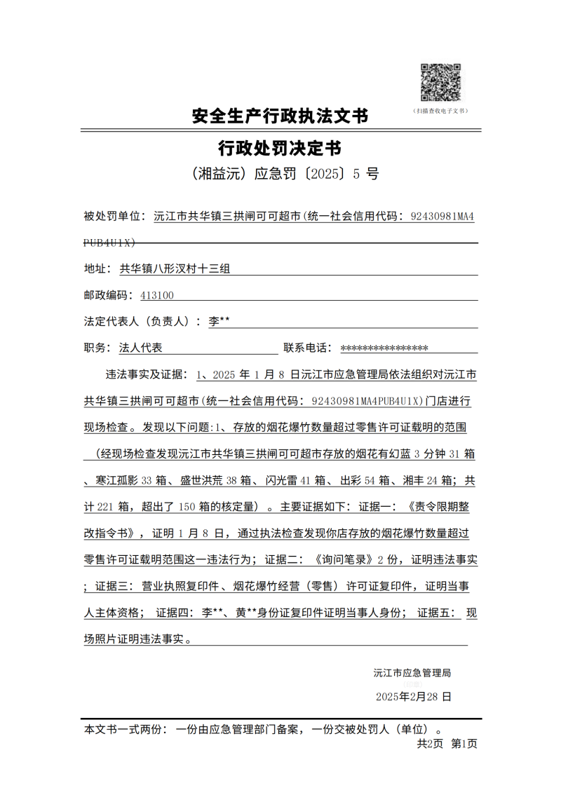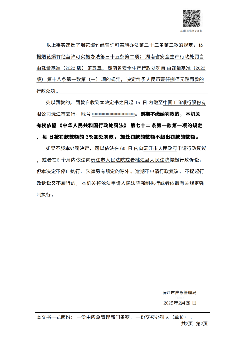 行政處罰決定書公示(湘益沅)應(yīng)急罰〔2025〕5 號