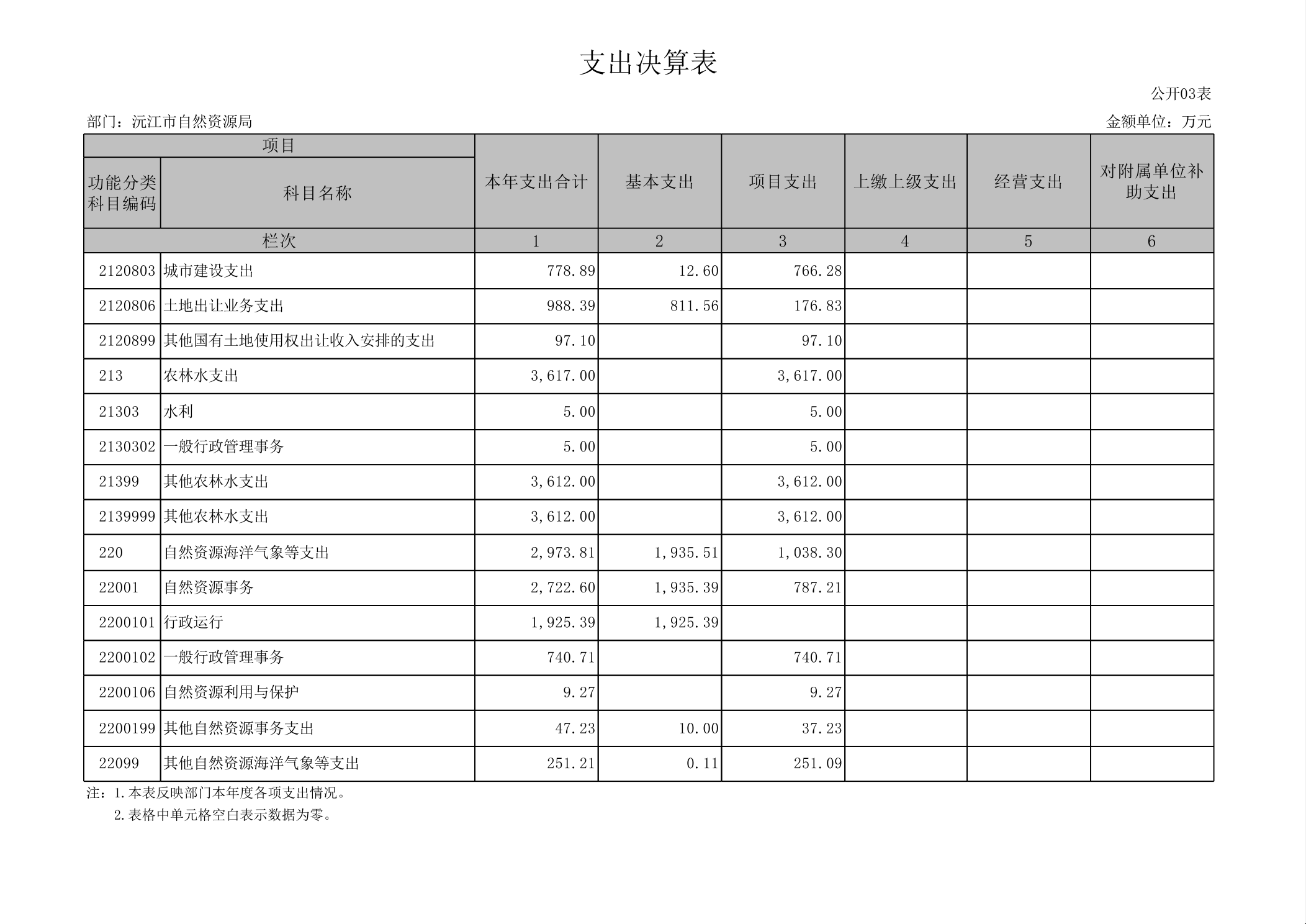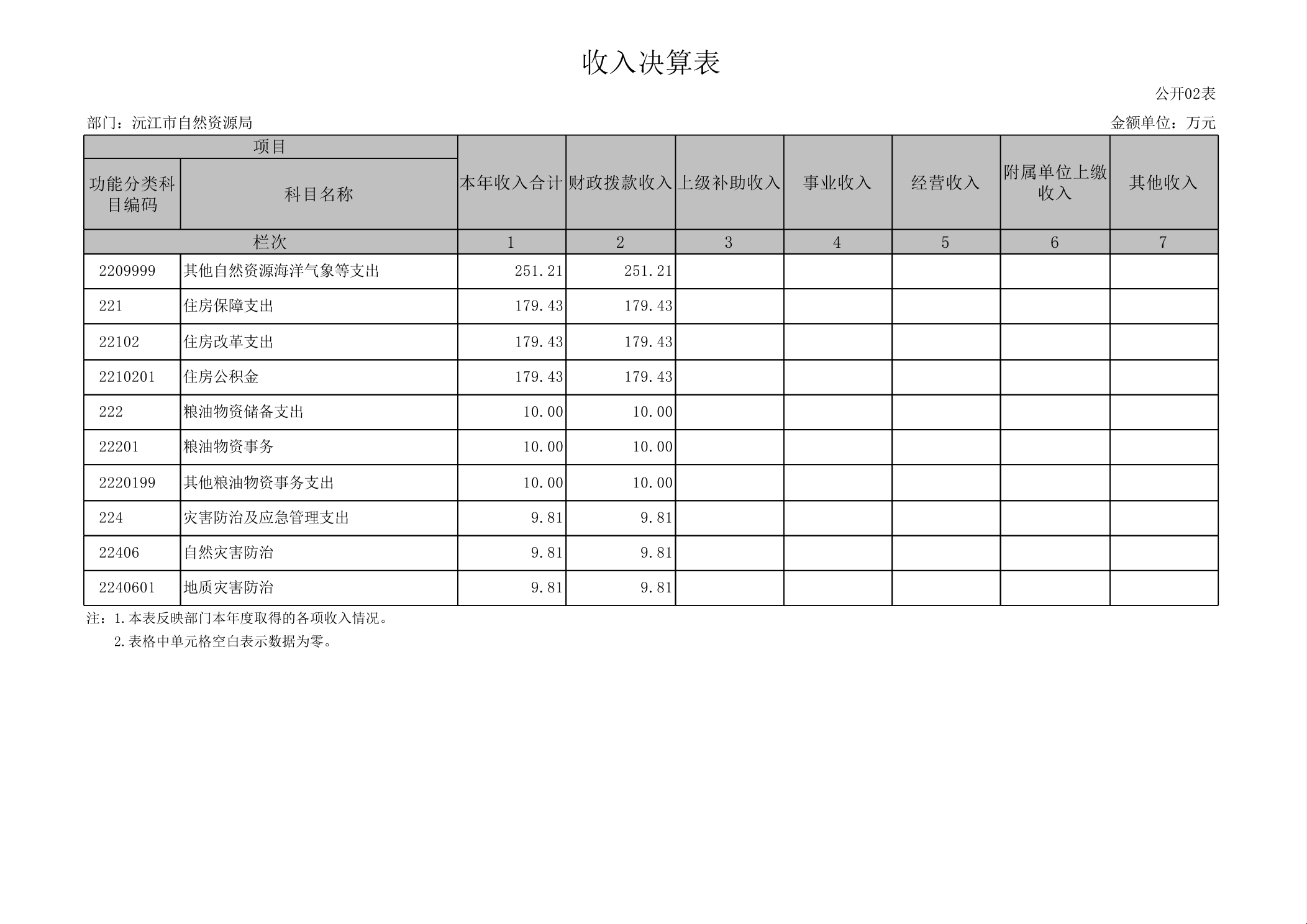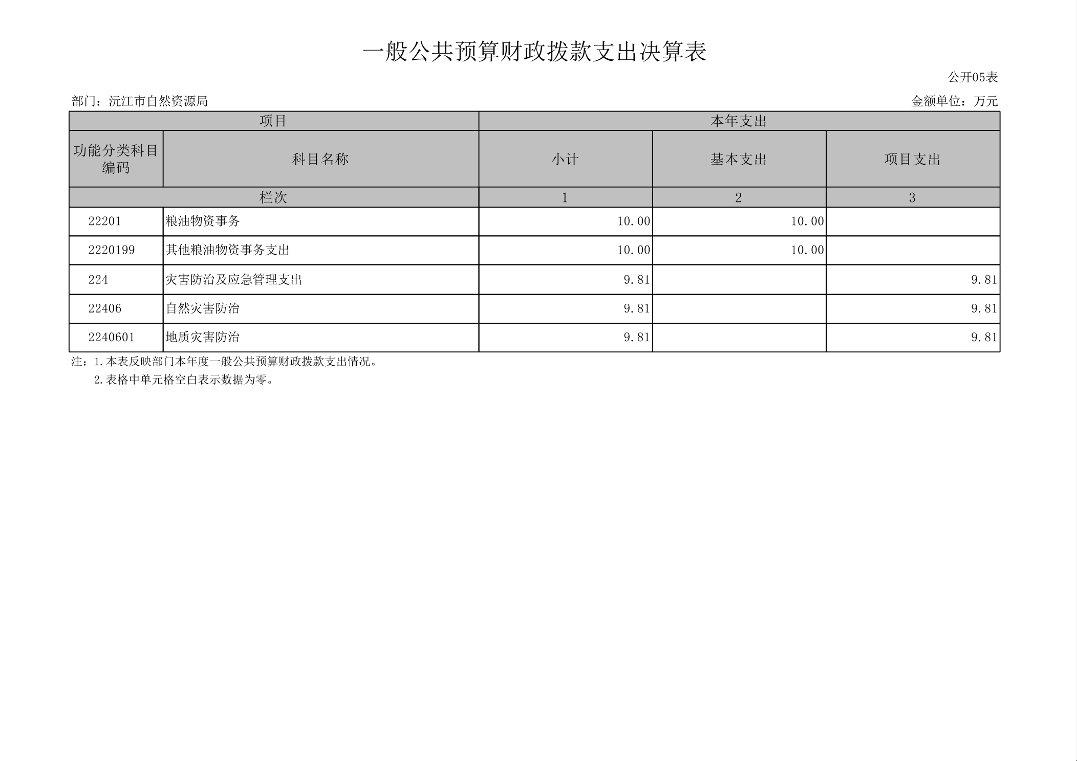 2024年度沅江市自然資源局部門決算