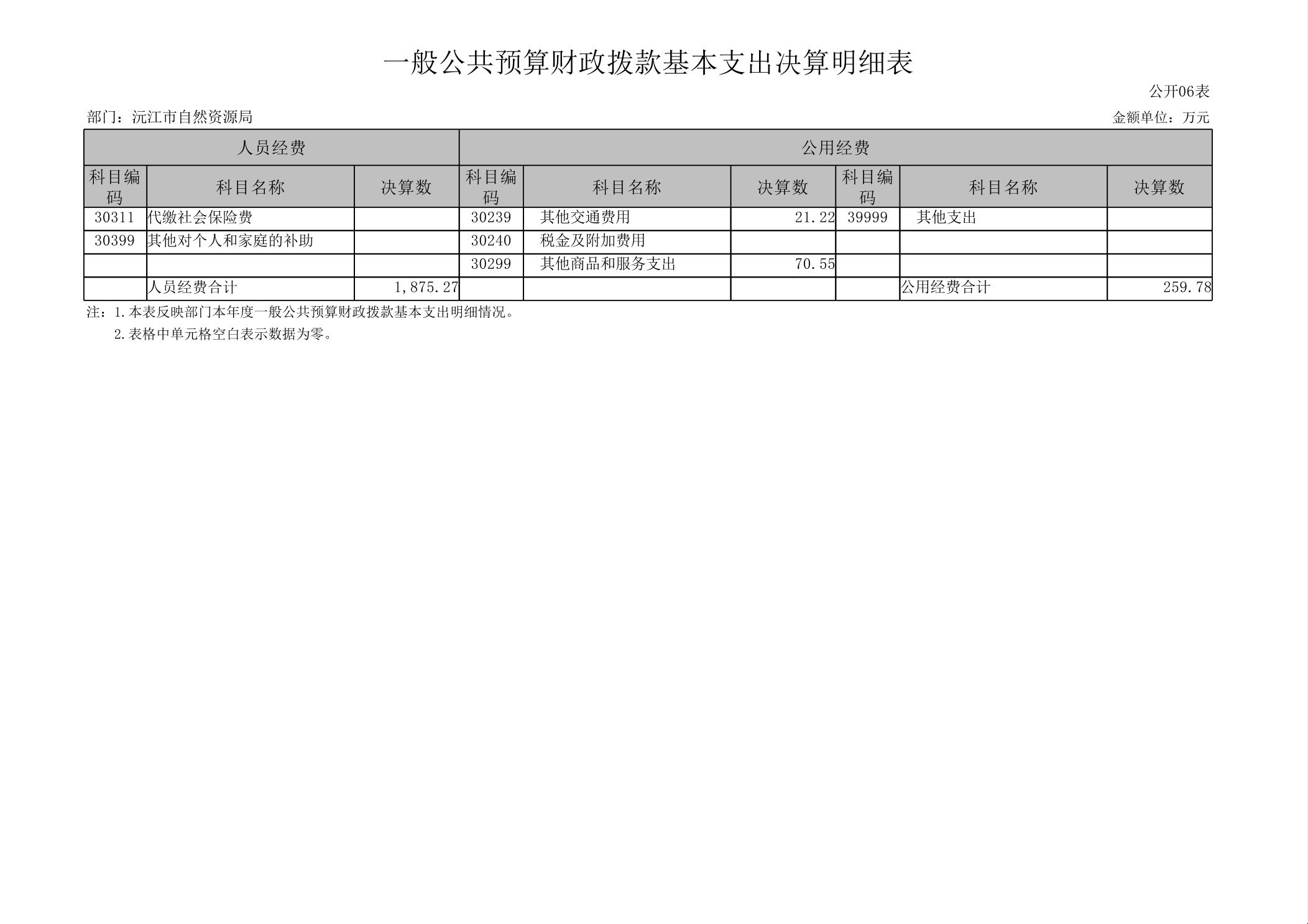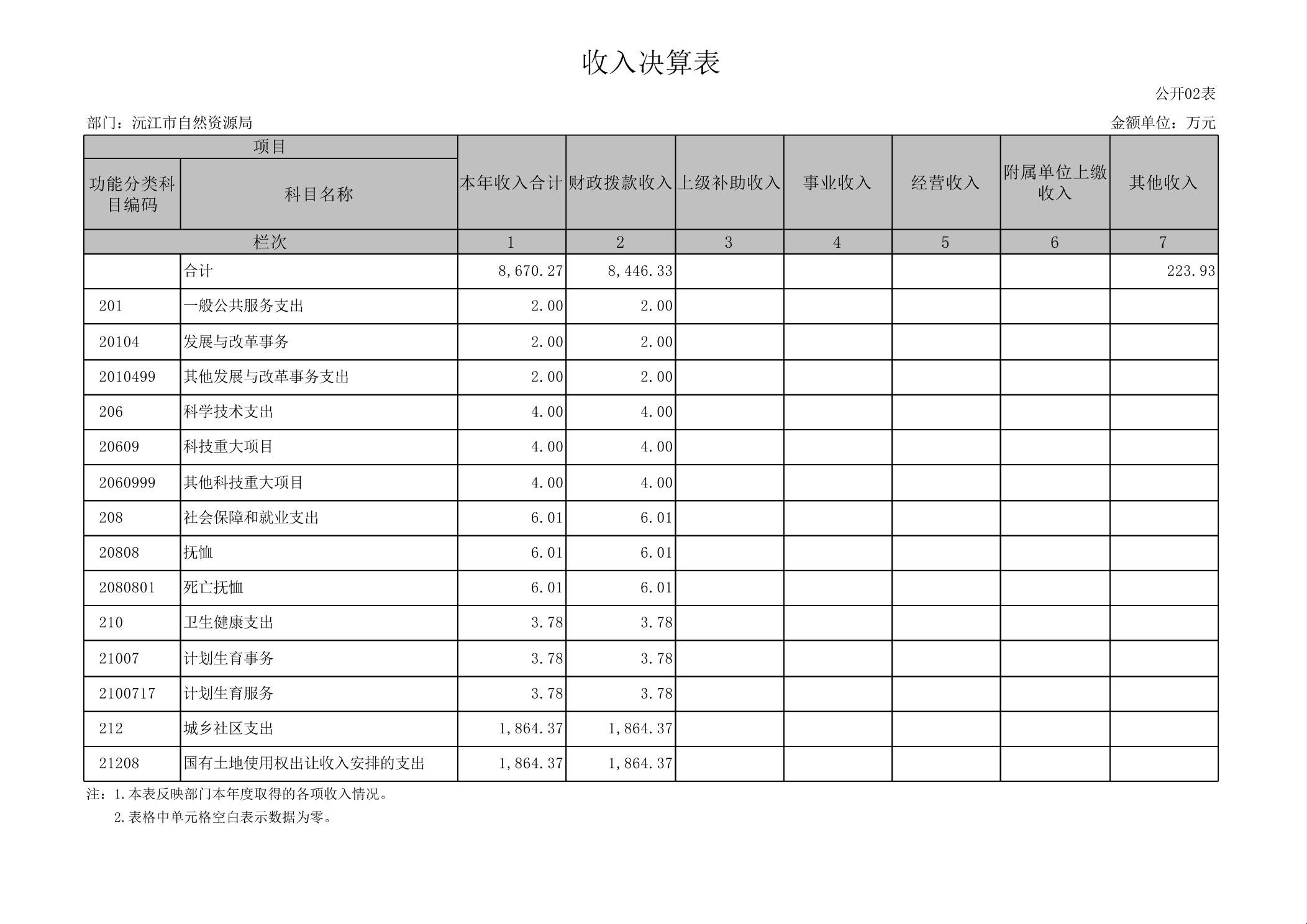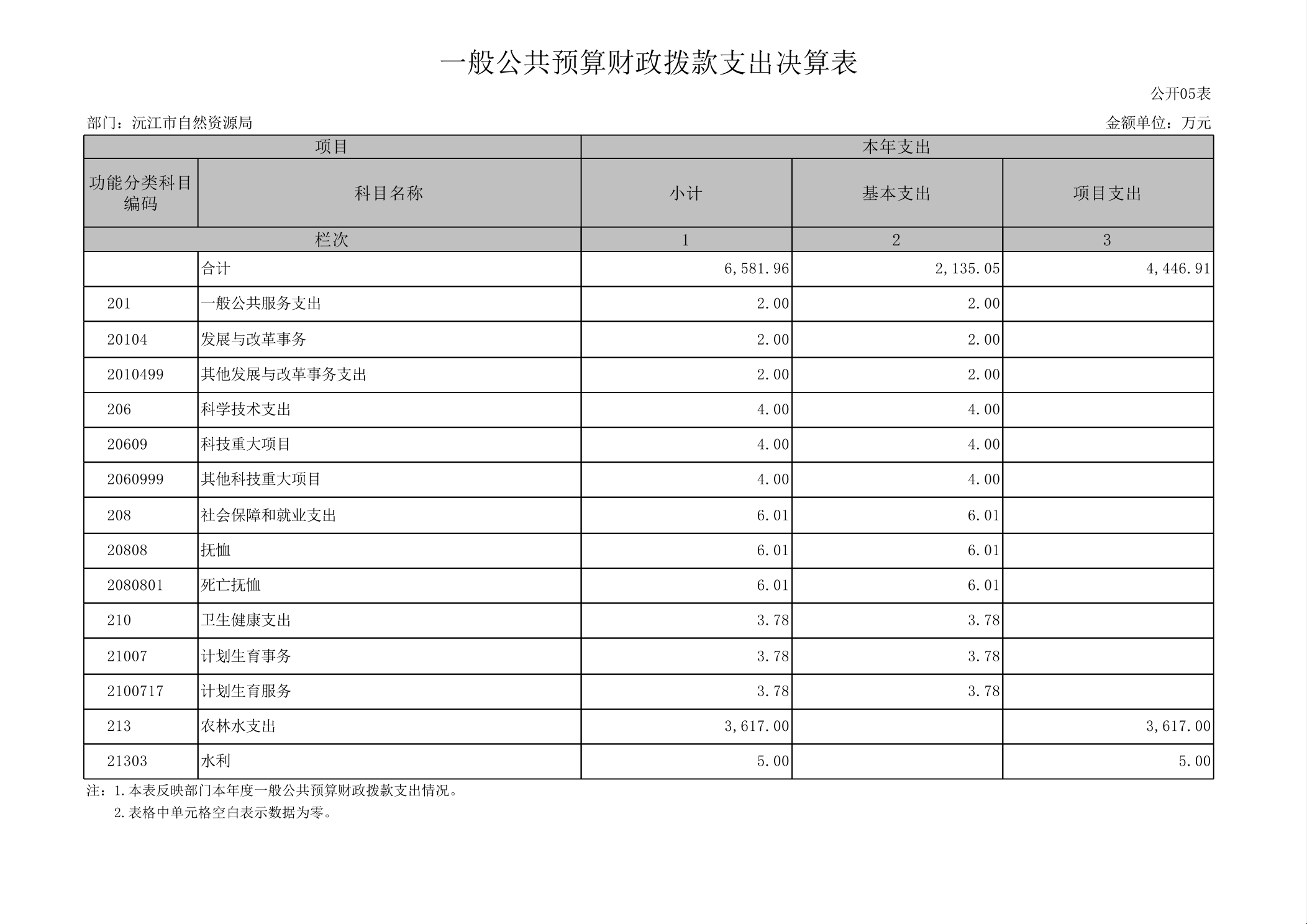 2024年度沅江市自然資源局部門決算