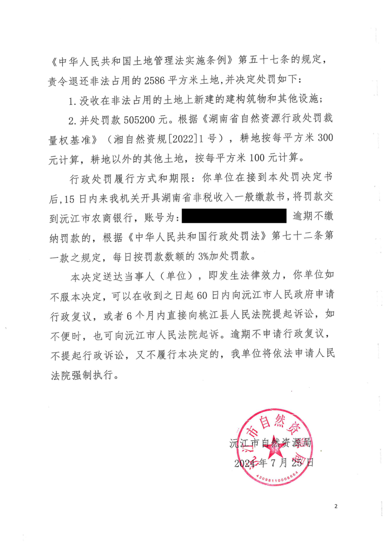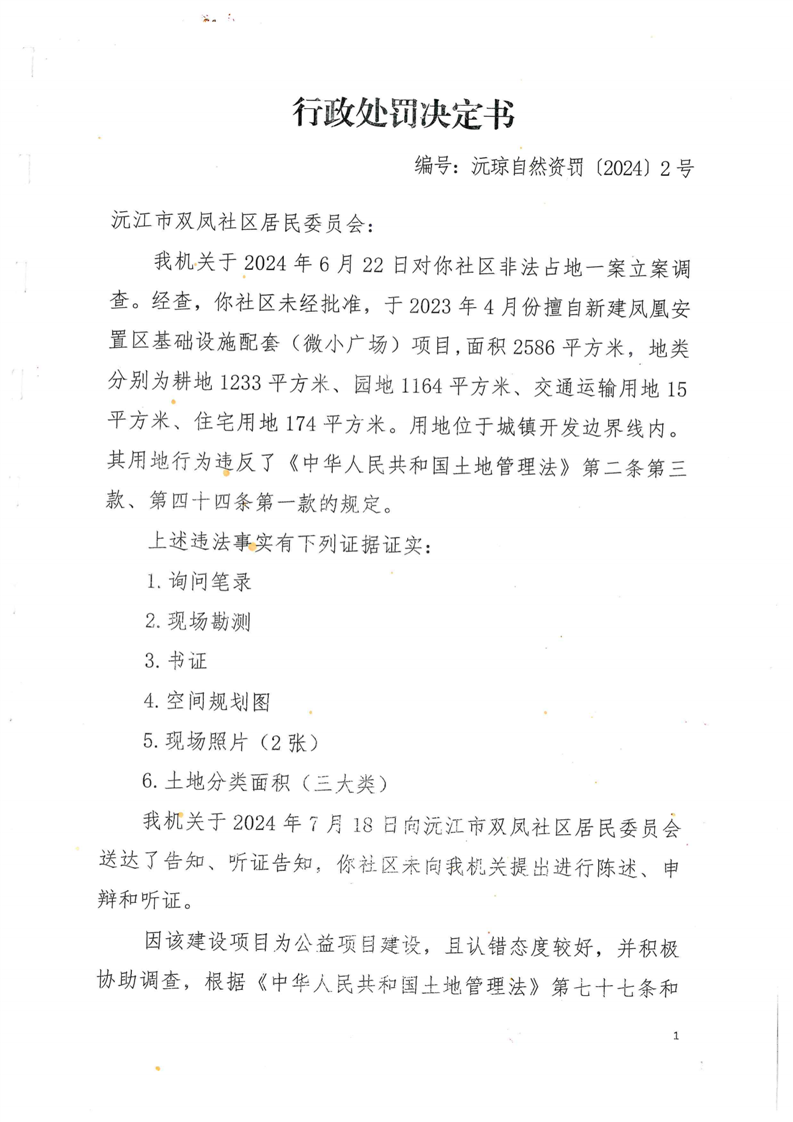 20240725沅瓊自然資罰〔2024〕2號行政處罰決定書