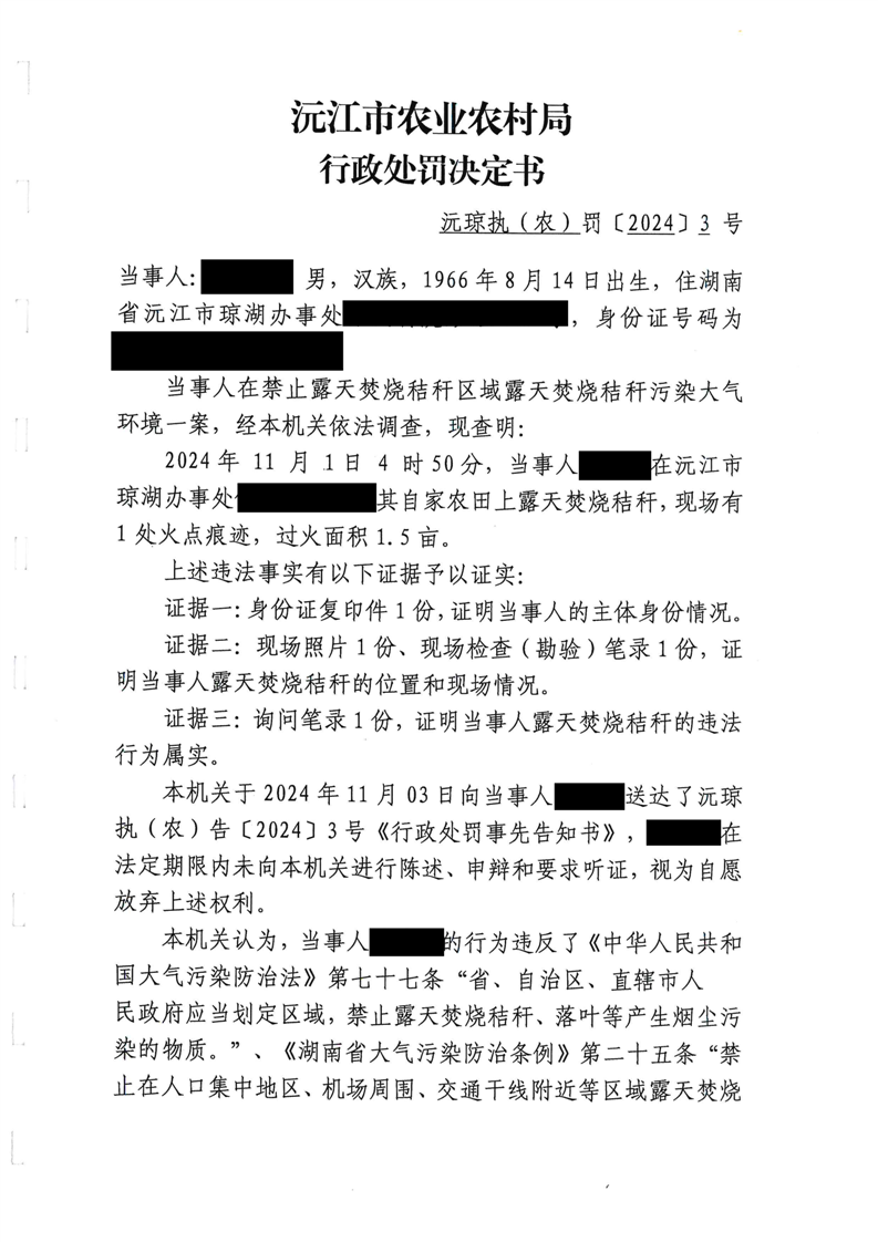 沅瓊執(zhí)(農(nóng))罰〔2024〕3號(hào)行政處罰決定書