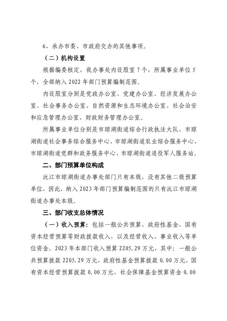 2023年沅江市瓊湖街道辦事處部門預算公開
