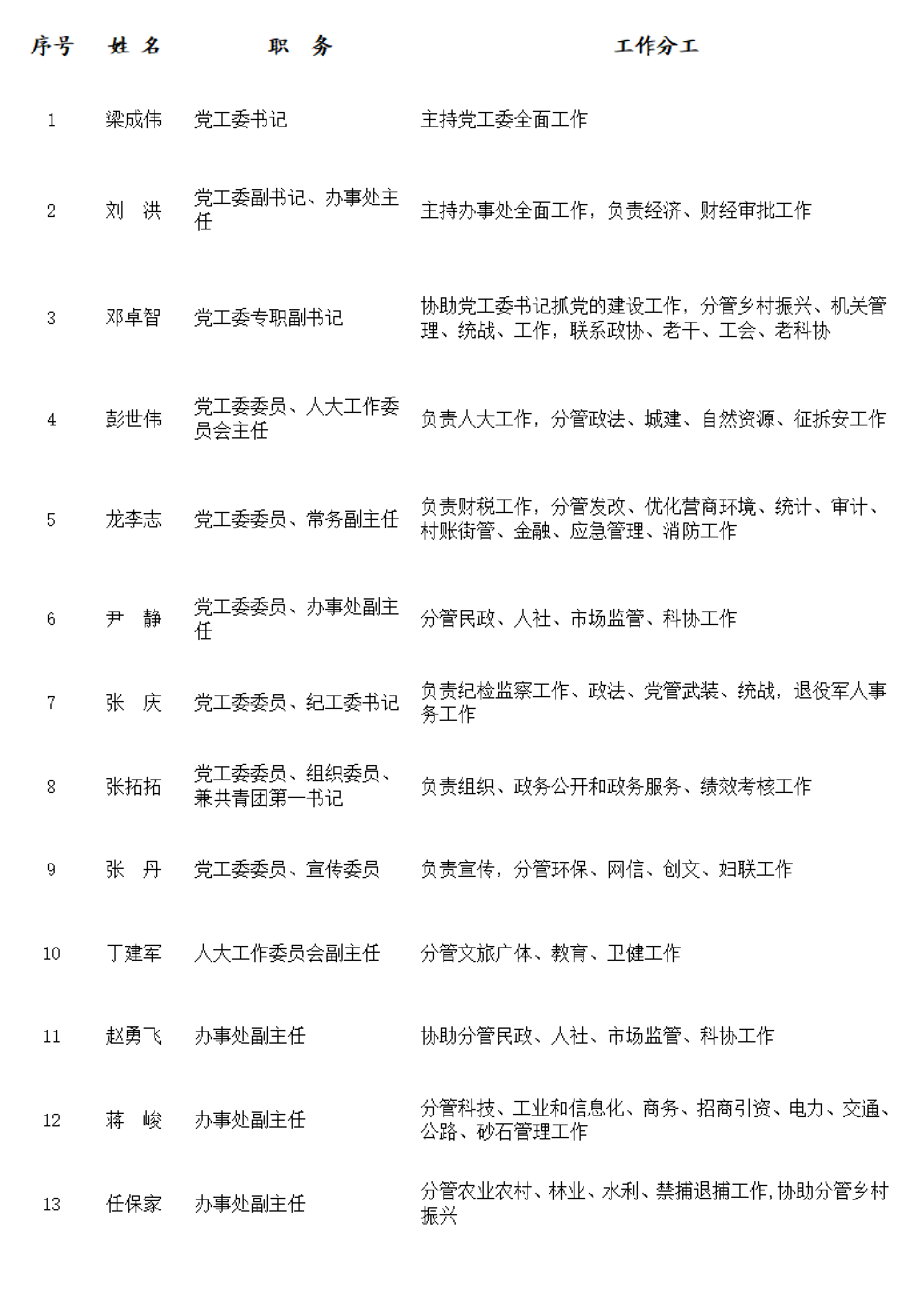 瓊湖街道辦事處班子成員分工表(2023.2)
