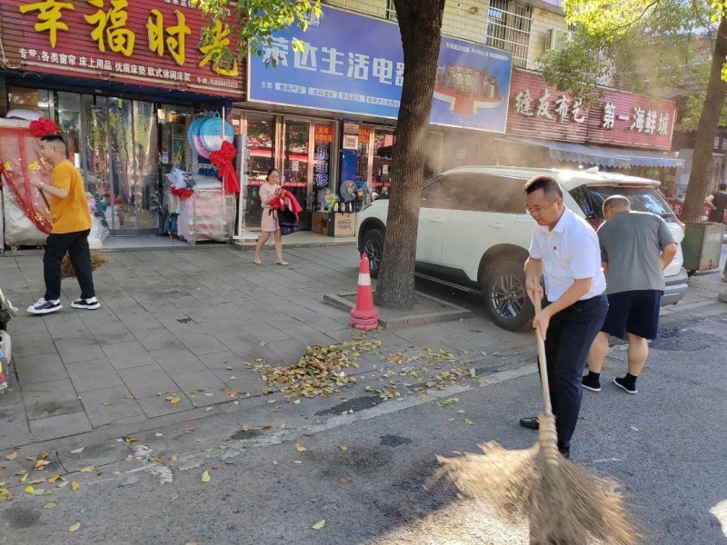 8月12日,沅江市委副書記、統戰部長侯耀森帶領聯點湘北社區部門單位對街區衛生進行清掃清除