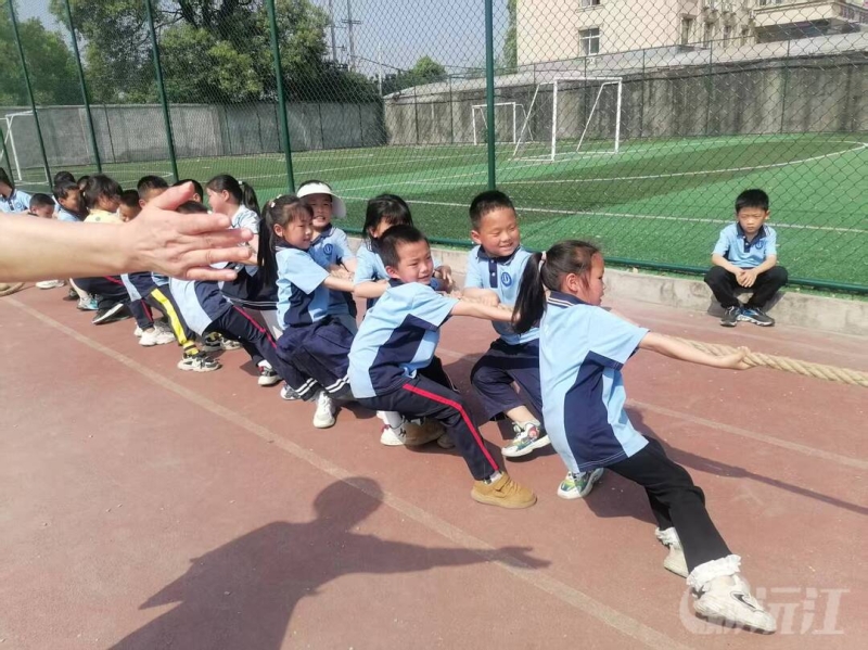 隨后,拔河比賽將現場氣氛推向高潮。各班級派出最強陣容參賽,隊員們個個精神抖擻、斗志昂揚。隨著裁判員哨聲響起,雙方隊員迅速緊握繩索,壓低重心,齊心協力向后拉拽。賽繩兩端,力量的較量激烈展開;場外,啦啦隊員們整齊劃一的加油聲此起彼伏,為參賽隊員鼓勁助威。老師們也深受感染,紛紛來到隊伍前方吶喊,與學生們一同沉浸在熱烈的比賽氛圍中。