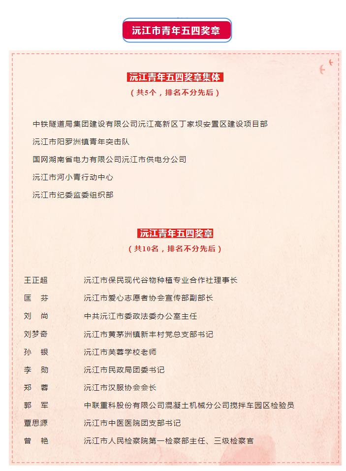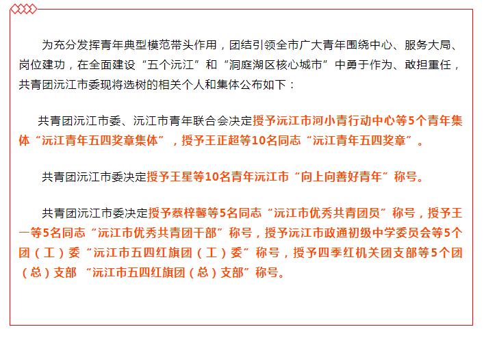 為青春榜樣點贊!沅江市五四先進個人(集體)公布