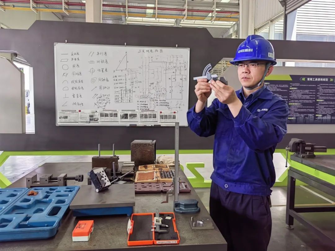 中聯重科攪拌車園區裝調車間裝配鉗工谷滔說:“曾輝師傅是我們團隊的‘定海神針’,他對待工作始終保持著極致的專注和嚴謹,無論是設備調試、工藝優化還是故障排查,他總能憑借豐富的經驗和高超的技術迅速解決問題。”