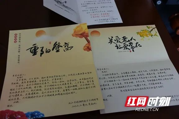 為何一份小賀卡能被珍藏?肖瑩說,“村里每年都會在重陽節對老人進行慰問,之前還會一起吃個‘敬老飯’。發生疫情沒辦法一起吃飯了,我就想出了制作重陽節賀卡這個法子!比f子湖的老人都知道,跟著賀卡一起發放的還有200元的敬老金。