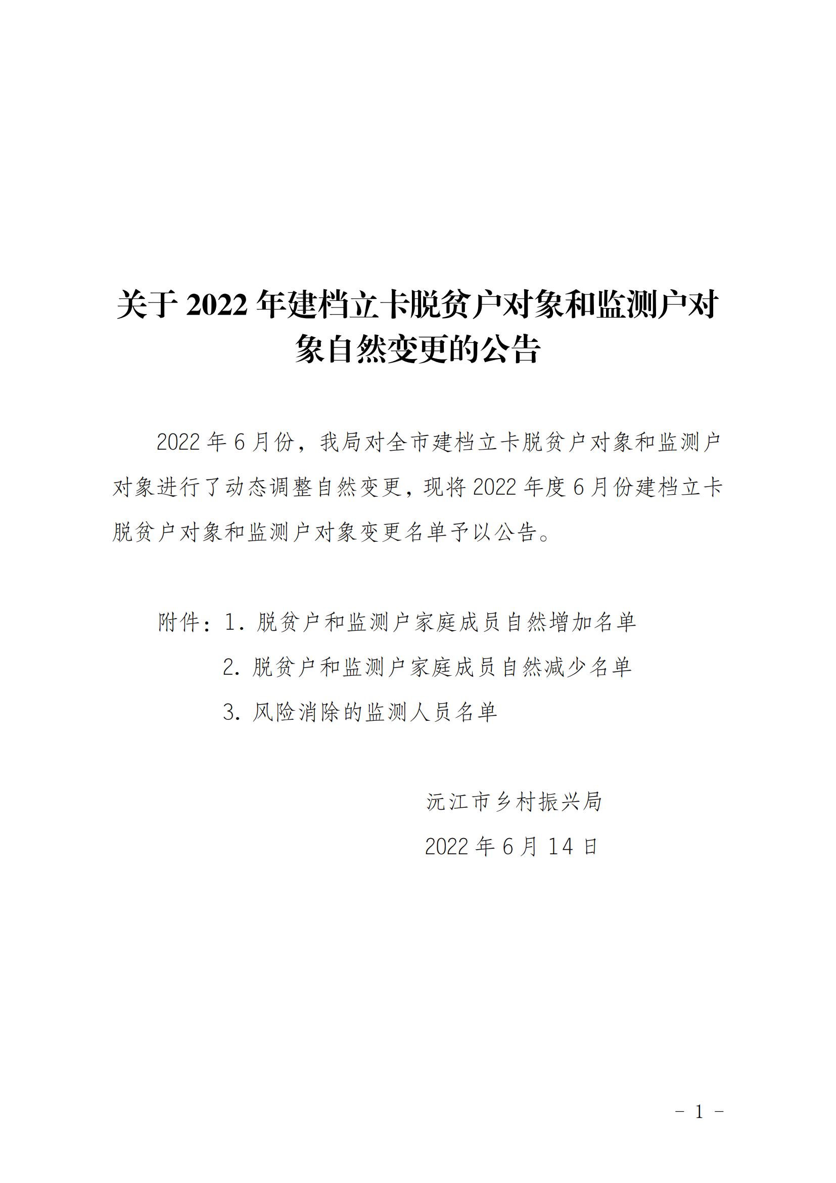 關于2022年建檔立卡脫貧戶對象和監測戶對象自然變更的公告(6月份).pdf