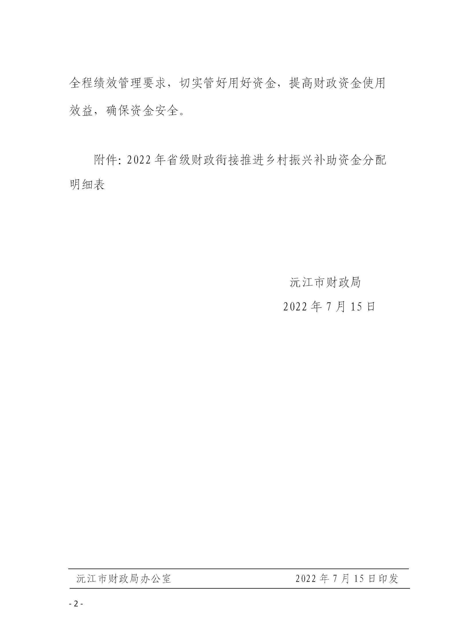 沅財農指〔2022〕15號 沅江市財政局關于下達2022年省級財政銜接推進鄉村振興補助資金的通知.pdf