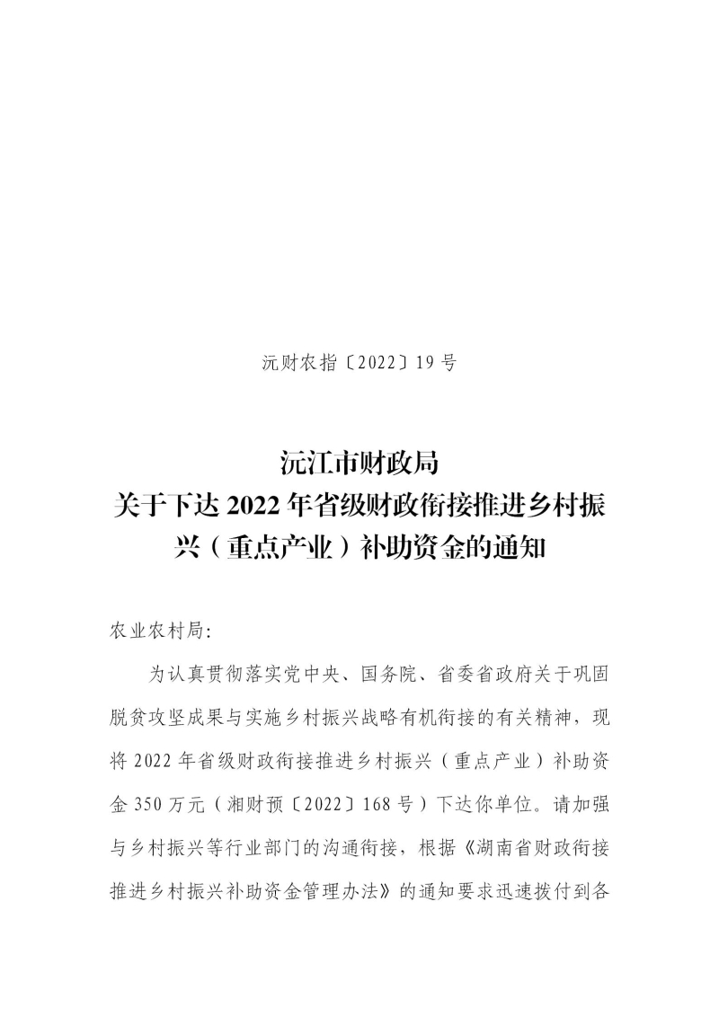 沅江市財政局關(guān)于下達2022年省級財政銜接推進鄉(xiāng)村(重點產(chǎn)業(yè))振興補助資金的通知.pdf 2022年省級財政銜接推進鄉(xiāng)村振興(重點產(chǎn)業(yè))補助資金分配明細表.xlsx