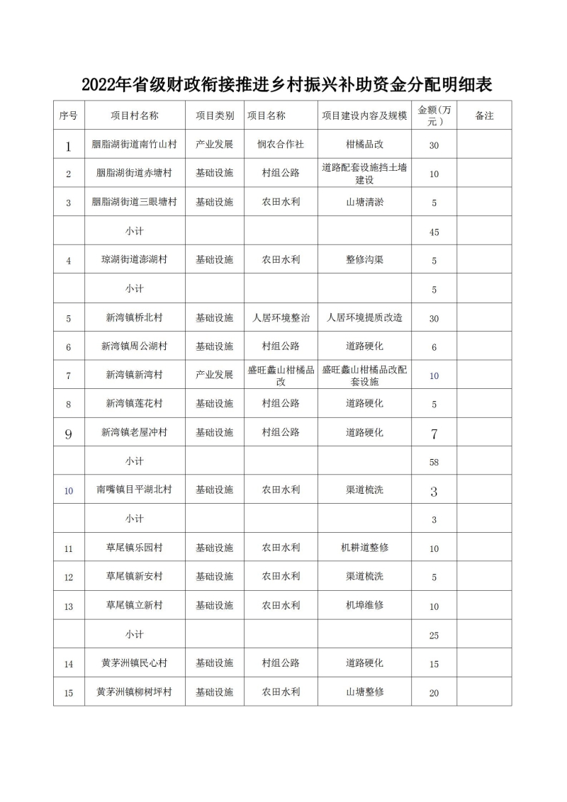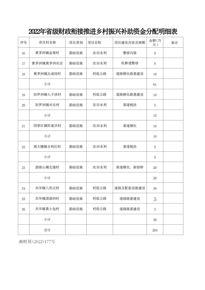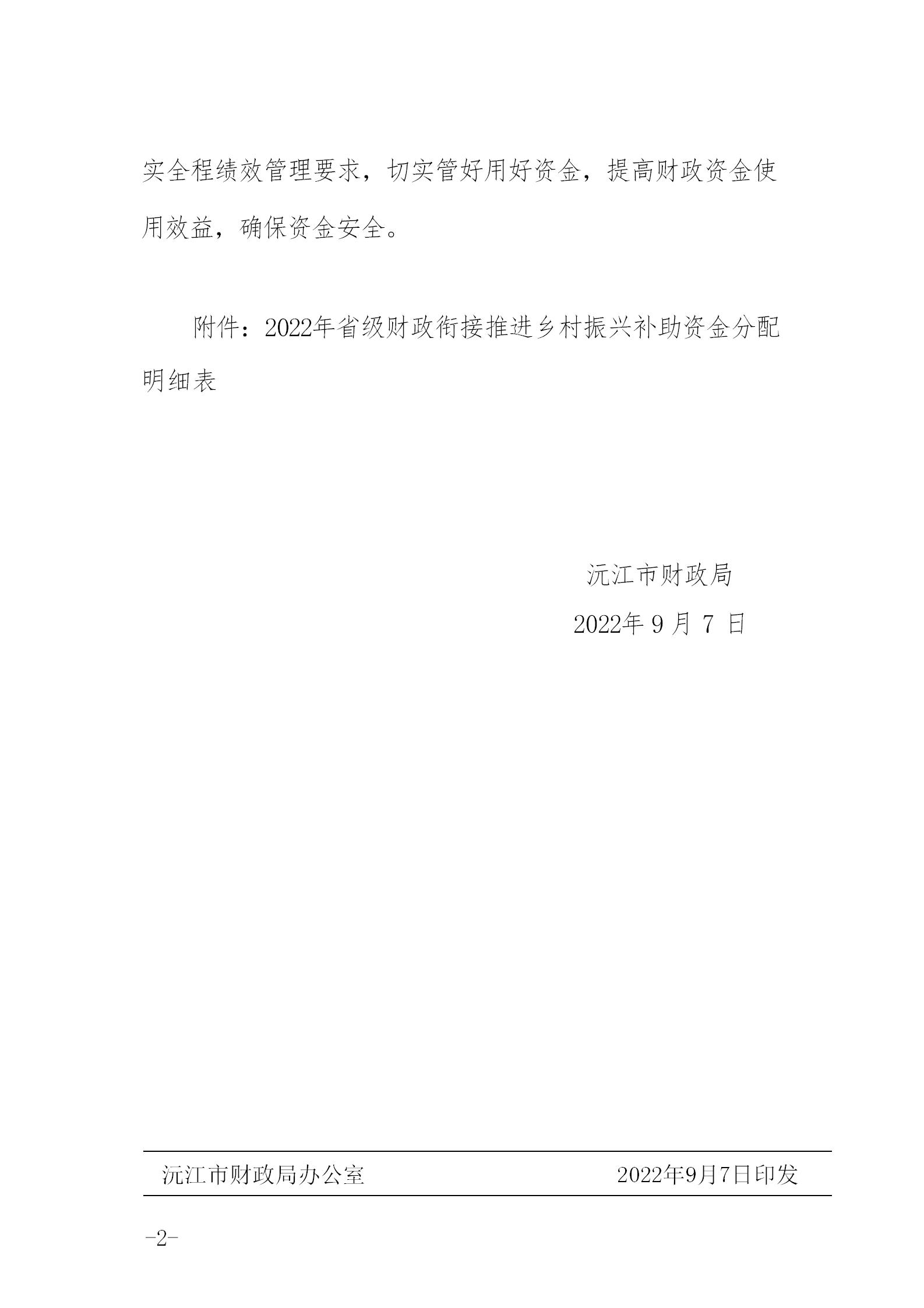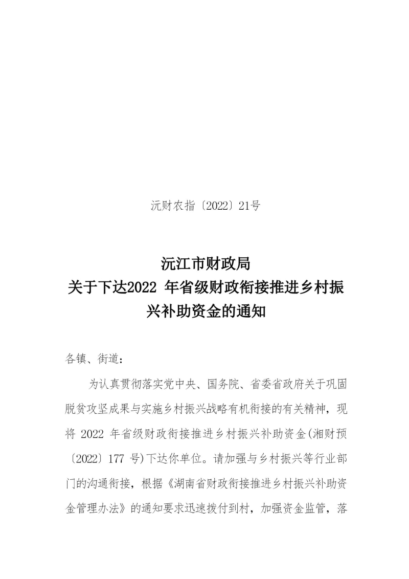 沅財農指〔2022〕21號 關于下達2022年省級財政銜接推進鄉村振興補助資金的通知