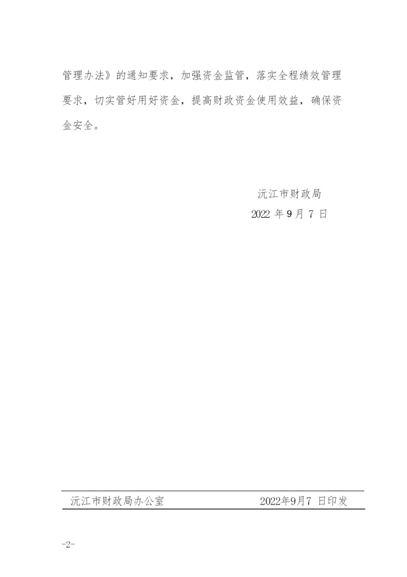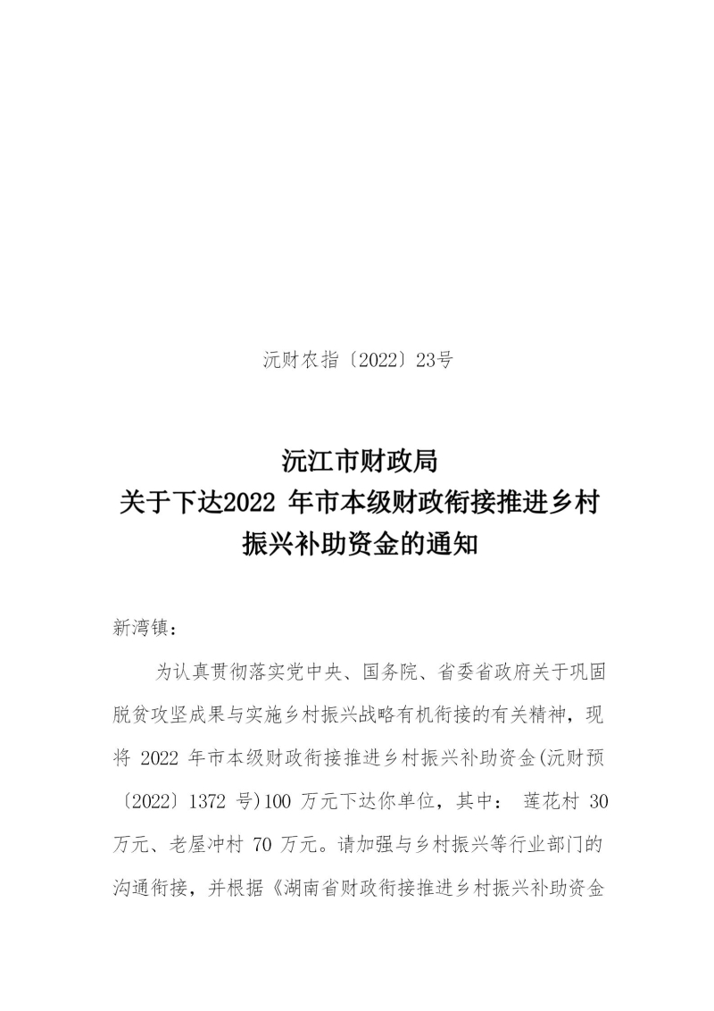 沅財農指〔2022〕23號 關于下達2022年市本級財政銜接推進鄉村振興補助資金的通知