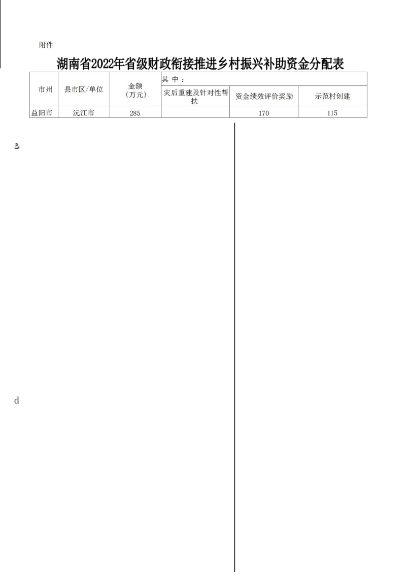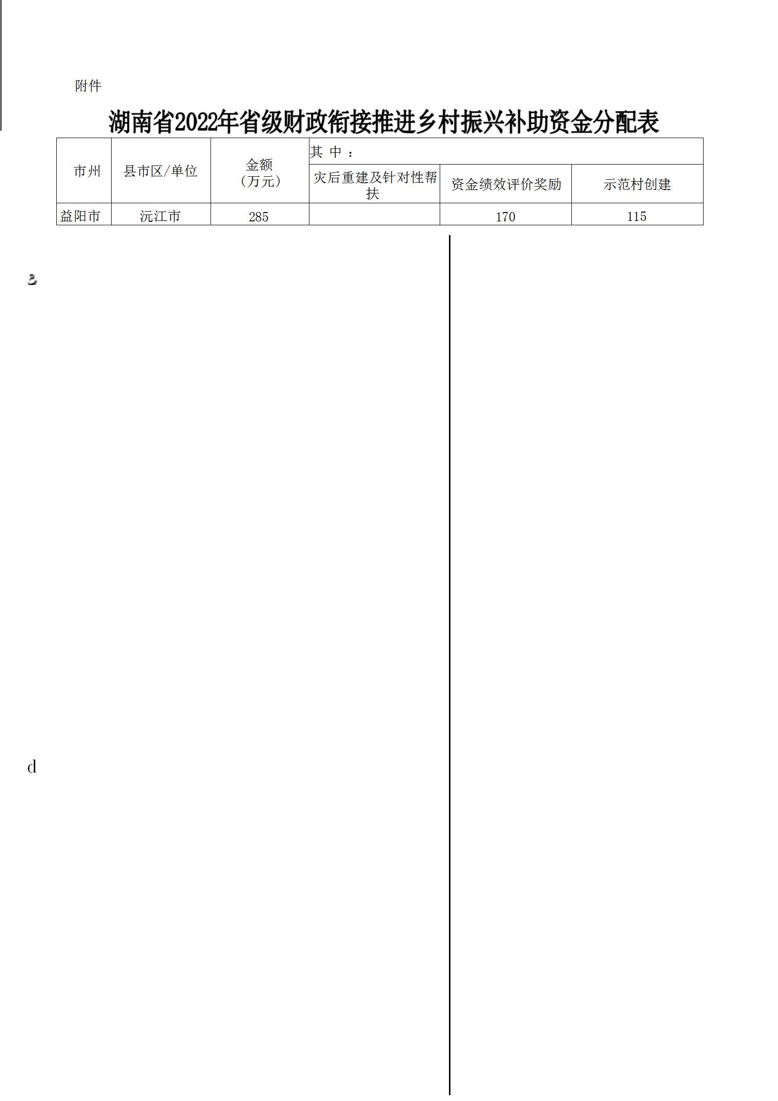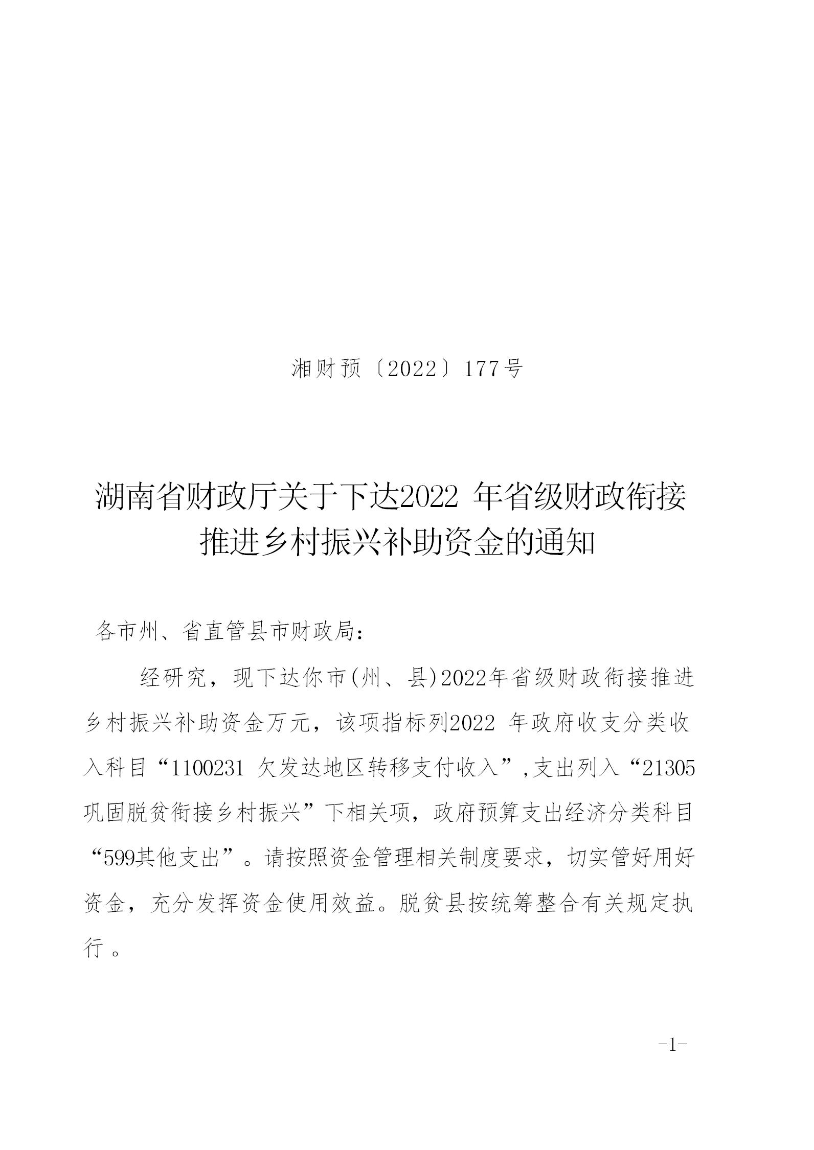 湘財(cái)預(yù)〔2022〕177號(hào) 關(guān)于下達(dá)2022年省級(jí)財(cái)政銜接推進(jìn)鄉(xiāng)村振興補(bǔ)助資金的通知
