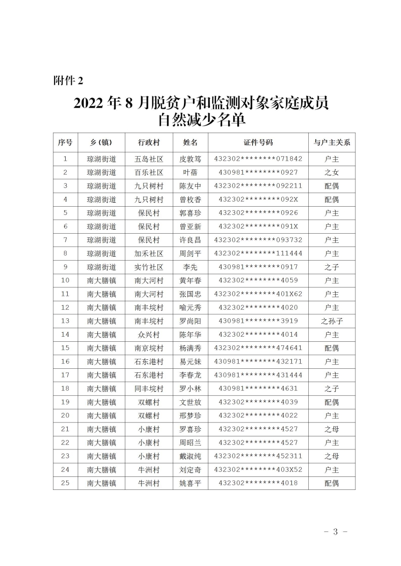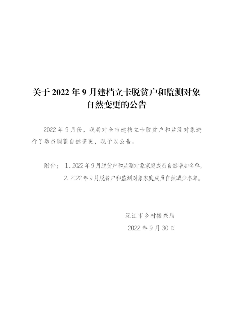 關(guān)于2022年建檔立卡脫貧戶對(duì)象和監(jiān)測戶對(duì)象自然變更的公告(9月份)