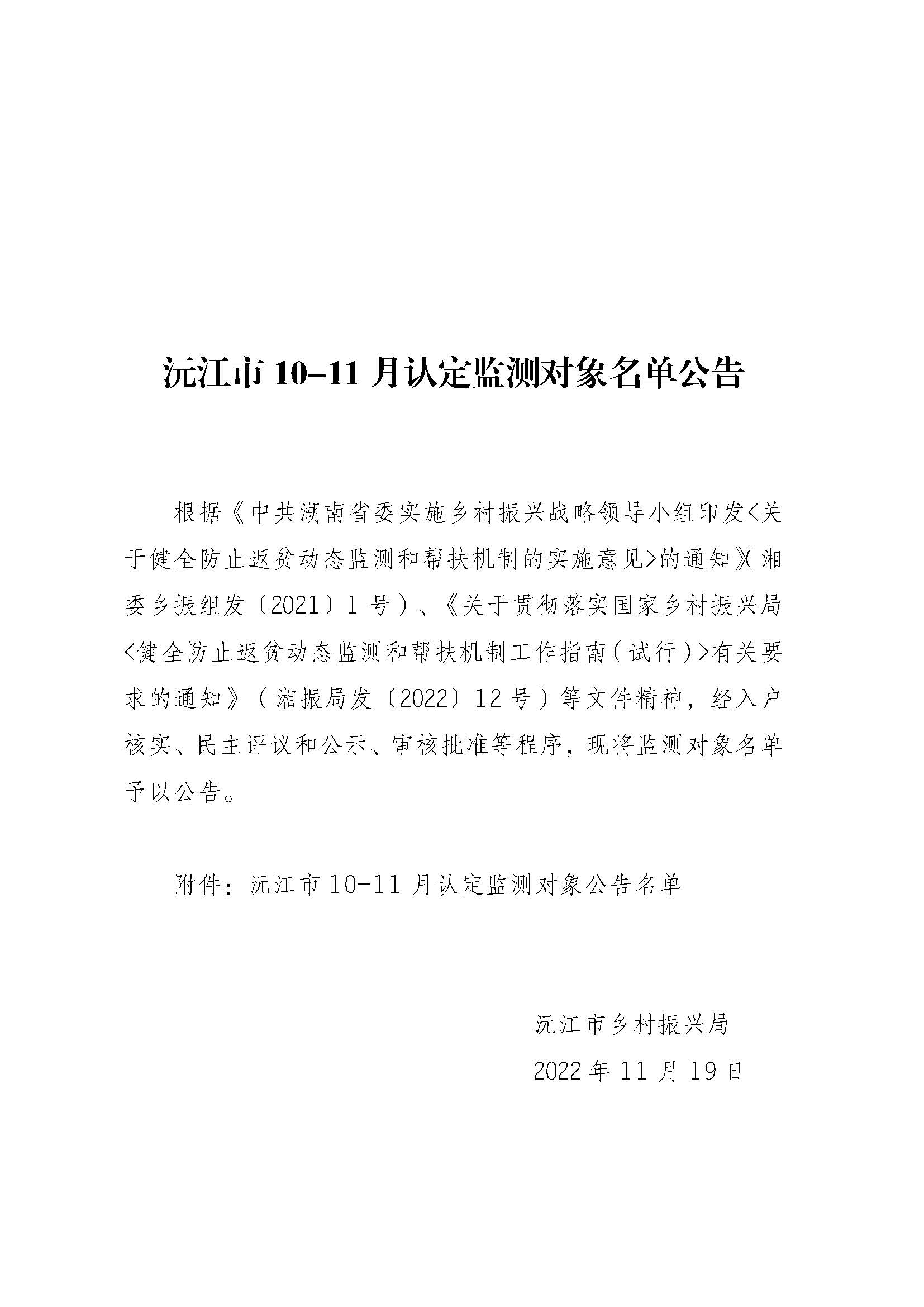 關于2022年11月建檔立卡脫貧戶和監測對象自然變更的公告