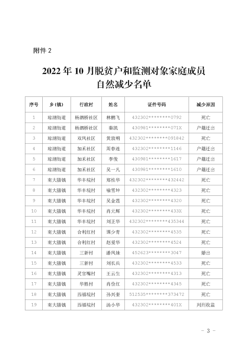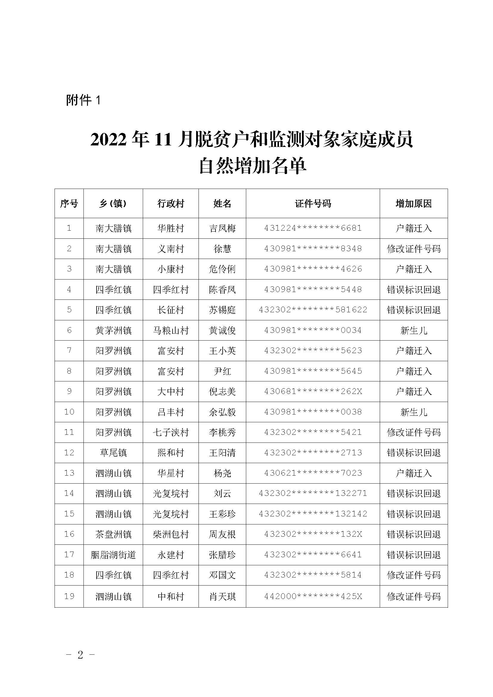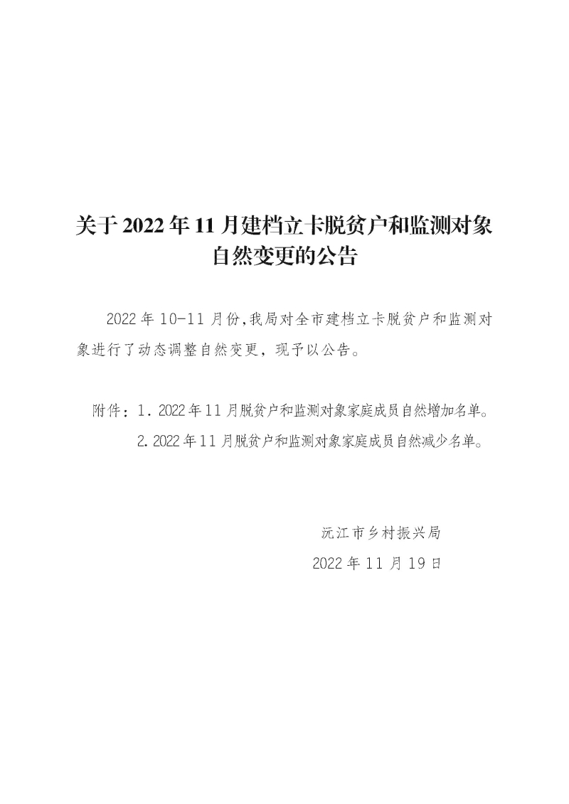 關于2022年建檔立卡脫貧戶對象和監測戶對象自然變更的公告(11月份)