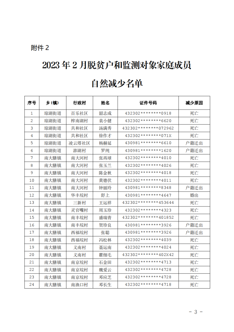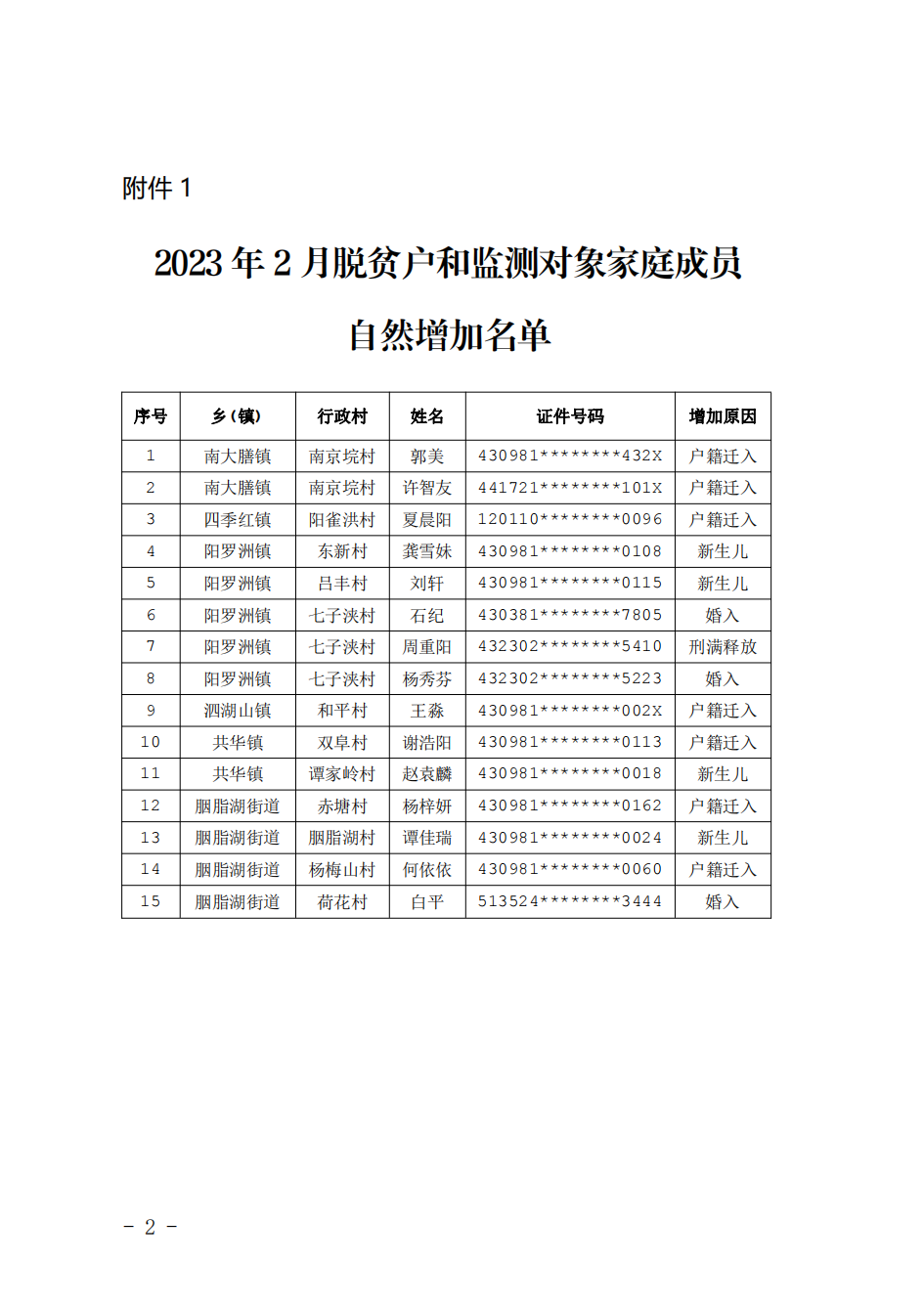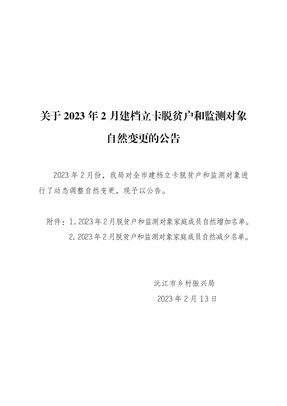 關(guān)于2023年建檔立卡脫貧戶對(duì)象和監(jiān)測(cè)戶對(duì)象自然變更的公告(2月份)