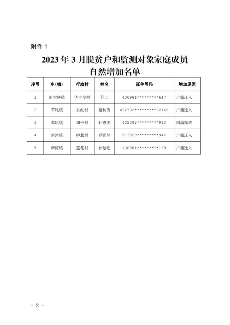 關于2023年3月建檔立卡脫貧戶和監測對象自然變更的公告