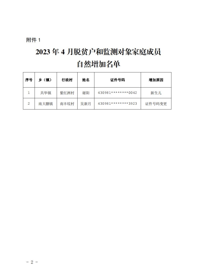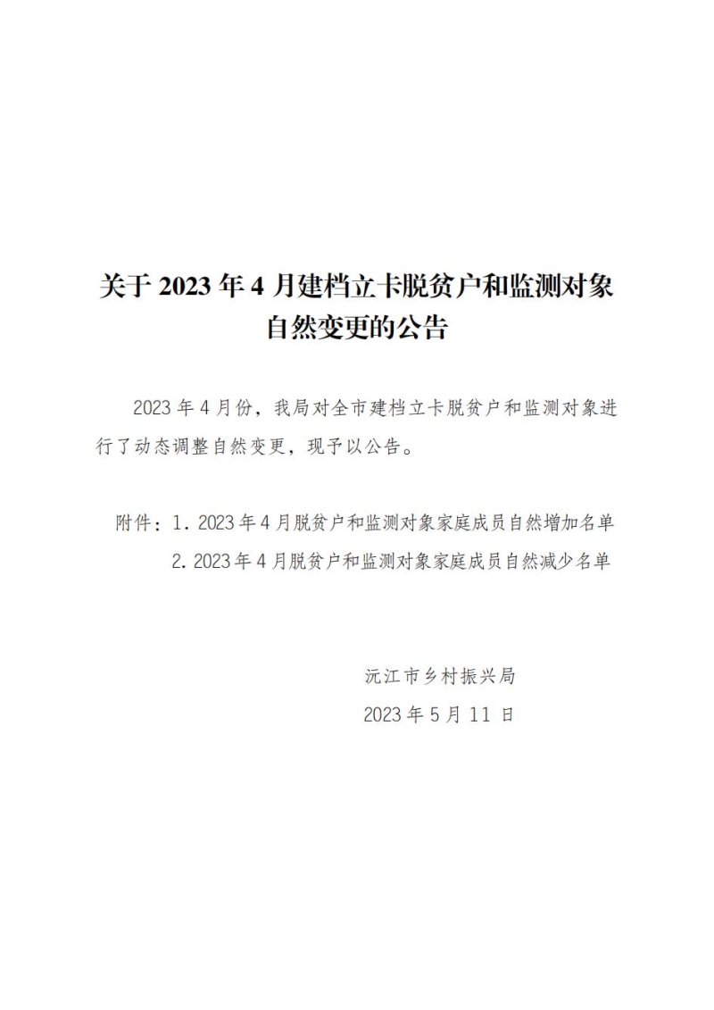 關于2023年4月建檔立卡脫貧戶和監測對象自然變更的公告