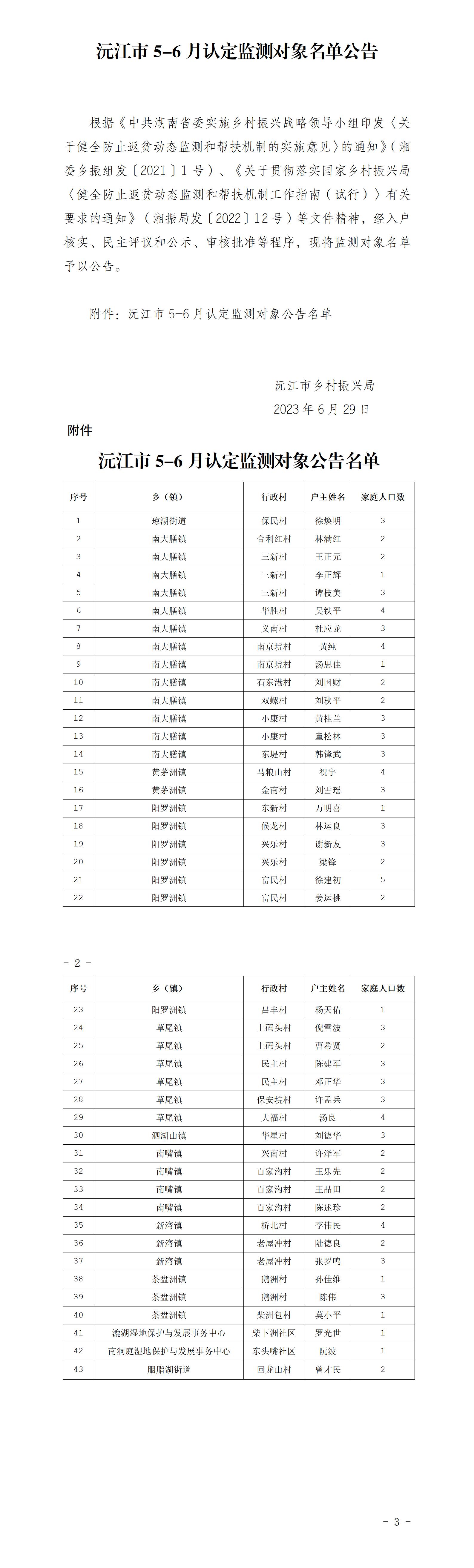 沅江市5-6月認(rèn)定監(jiān)測對(duì)象名單公告