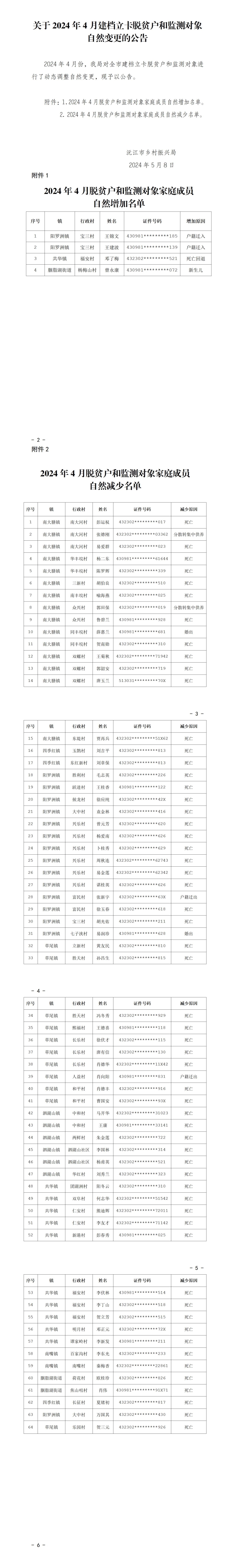 關于2024年4月建檔立卡脫貧戶和監測對象自然變更的公告