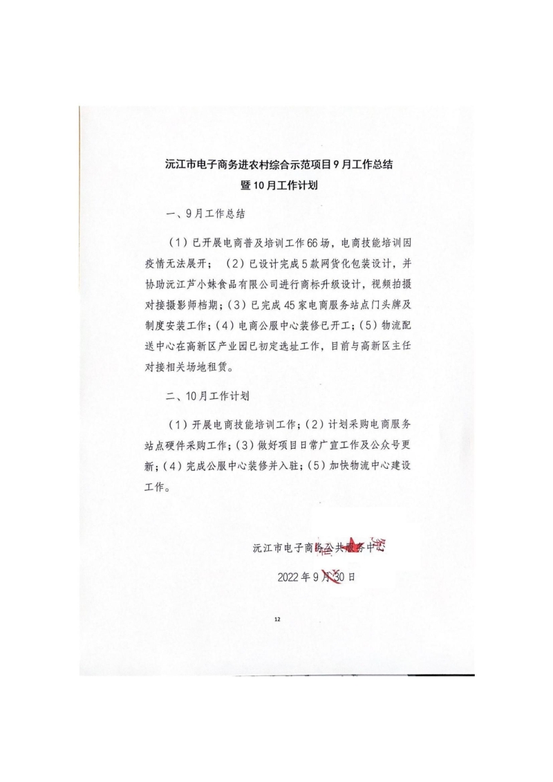 沅江市電子商務進農村綜合示范項目9月工作總結暨10月工作計劃